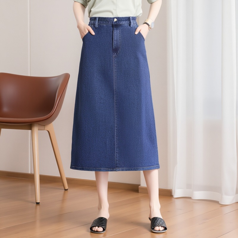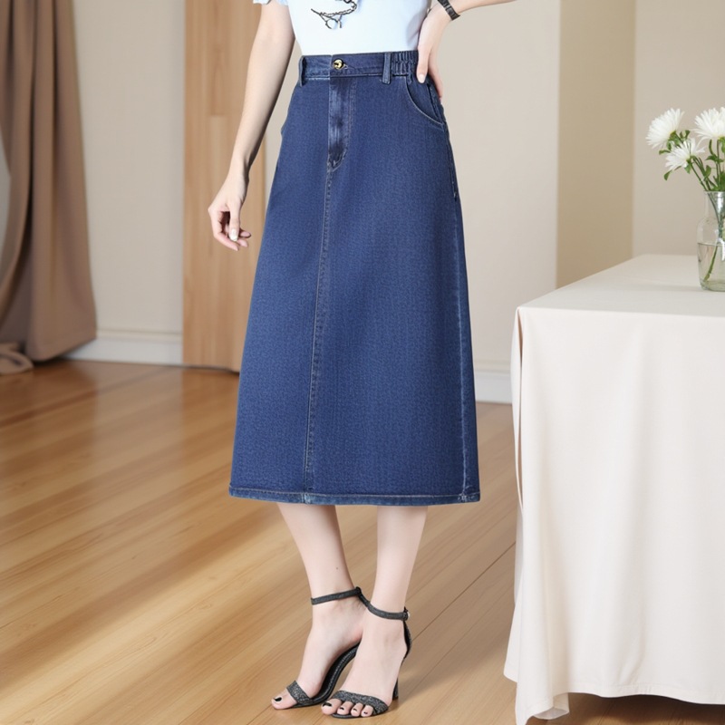 Деформация толстого мм корейская версия свободной дикой средней и длинной темпераментной джинсовой юбки 2025 весна и осень новая юбка большого размера