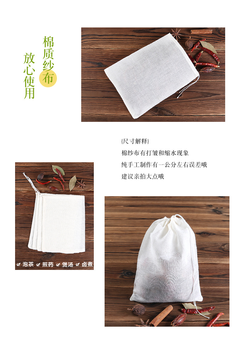 Мешок из хлопчатобумажной ткани, мешок для супа, мешок для отделения, мешок для приправ, мешок для рассола, фильтр-мешок, марлевый мешок, мешок для приправ, многократное использование