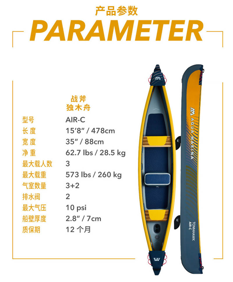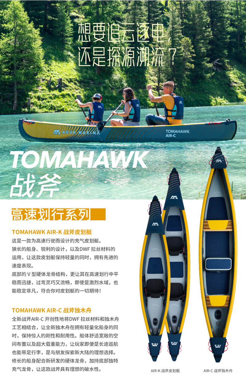 AquaMarina весело катается на Tomahawk Tomahawk Одноместный двойной тройной AIR-C надувной байдарки на каноэ