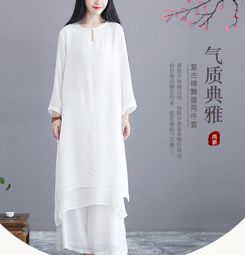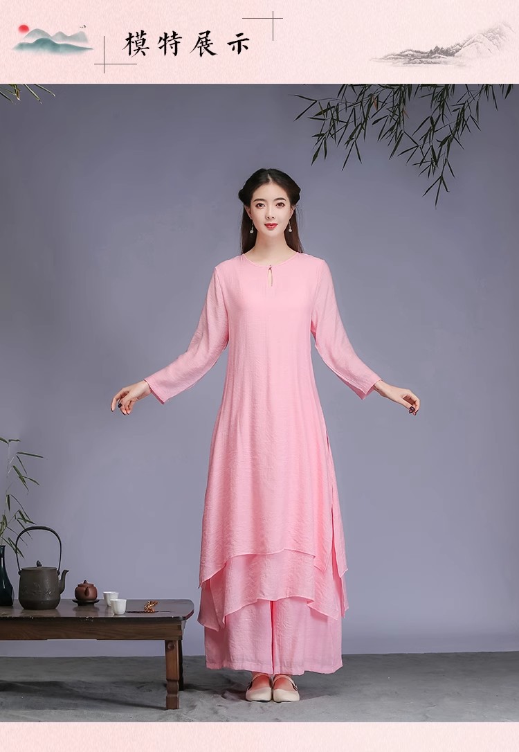 Цельная доставка сказочная художественная одежда из хлопка и льна из Тенсел в китайском стиле чайная одежда из двух частей Одежда для йоги Дзен танцевальная одежда костюм женский