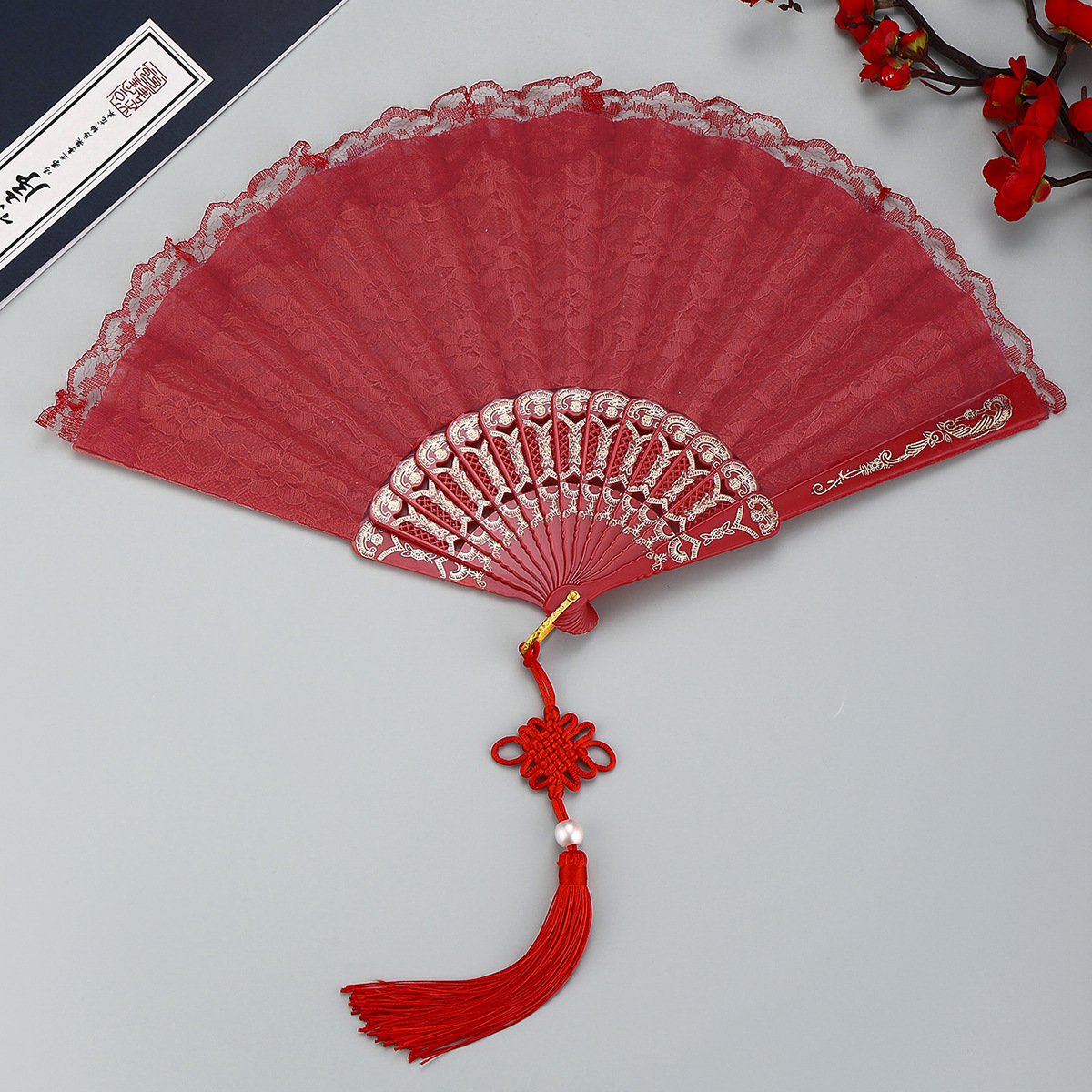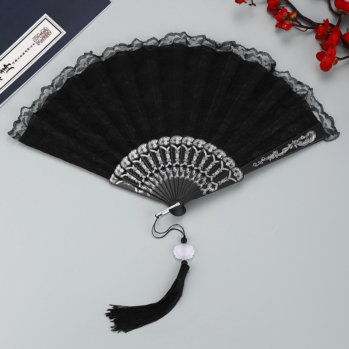 Заводской антикварный двойной кружевной веер с орхидеями танцевальный пластиковый складной веер оптом реквизит для выступлений