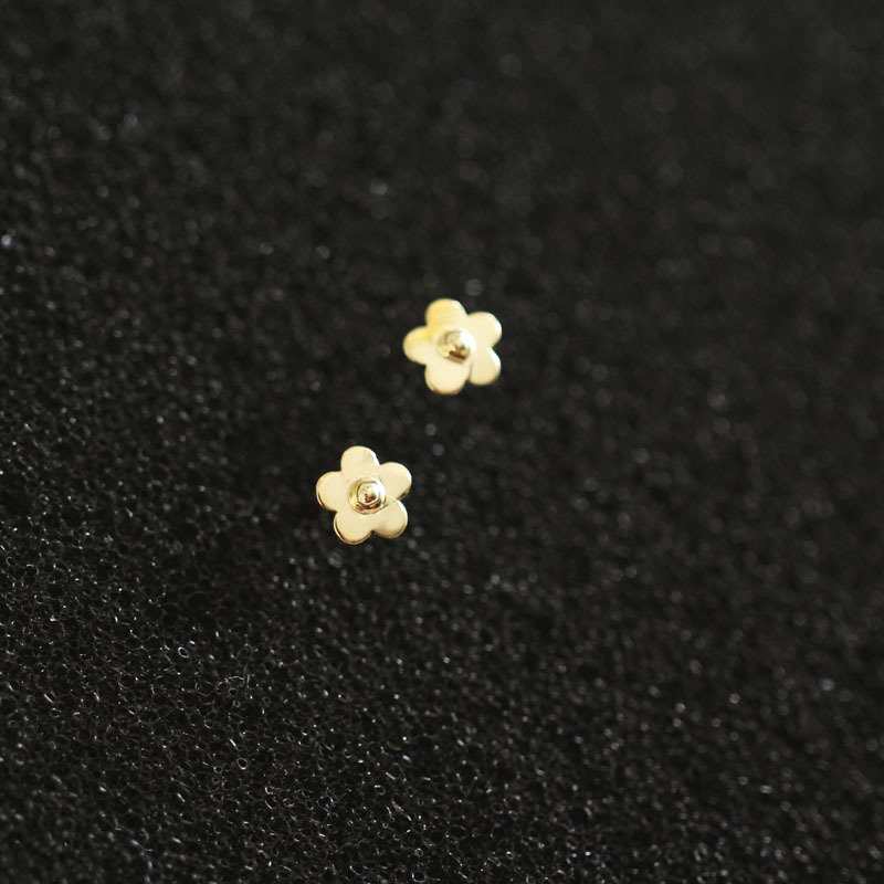 Чистое золото 9k цветочек Простой японский и корейский мини очень маленькие серьги
