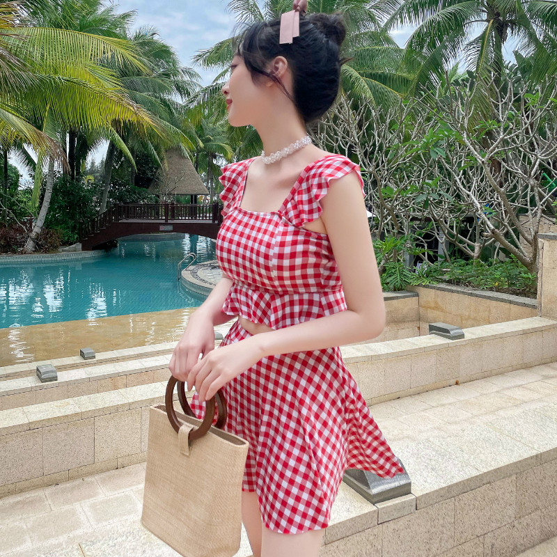 2025 новый купальник женский раздельный комплект из двух частей, маленький свежий и милый, для студенток, горячий источник, консервативный купальник оптом для женщин