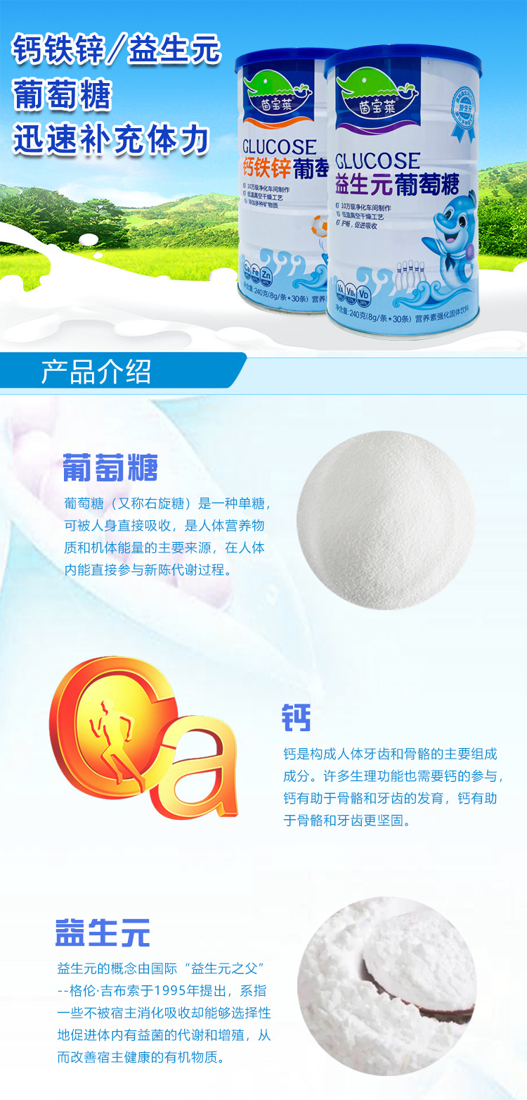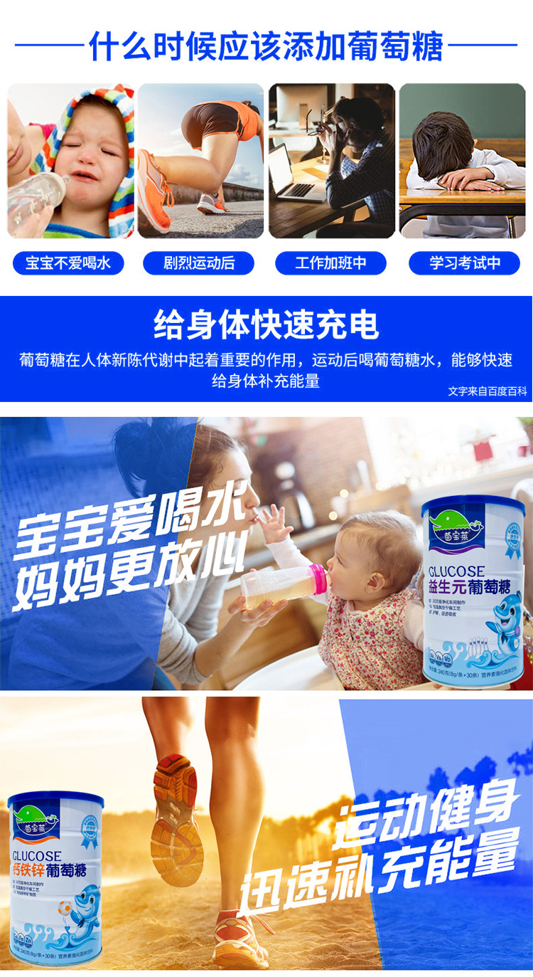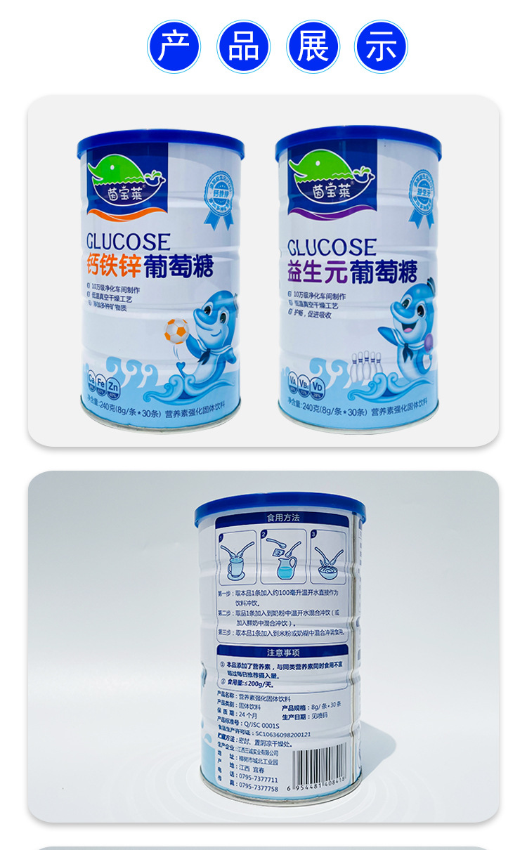 Yinbaolai безводный глюкоза детский питательный пакет глюкоза кальциевый железный цинк большая банка 240/банка производитель дропшиппинг