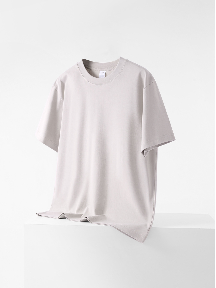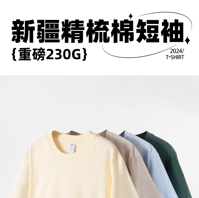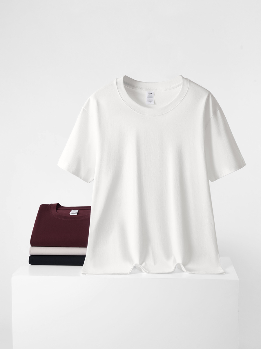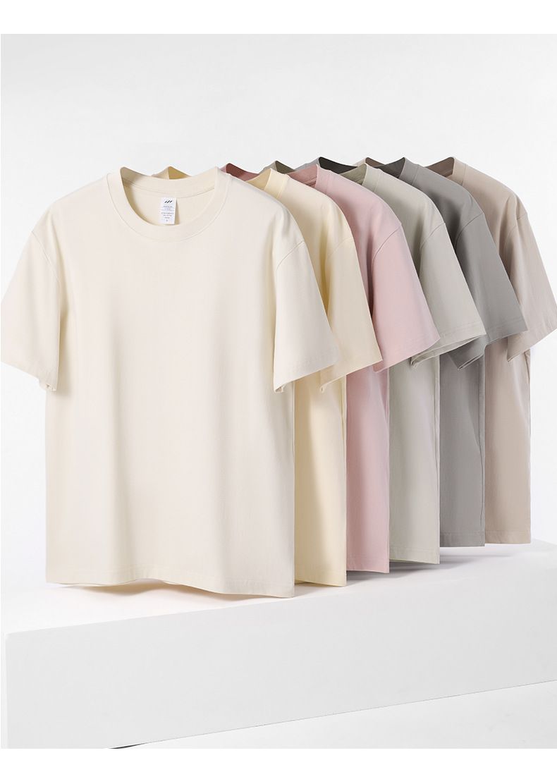 Три морских кита | 230 г с короткими рукавами Синьцзян расчесанный хлопок тяжелый мужской сплошной цвет белый прилив свободный пустой футболка