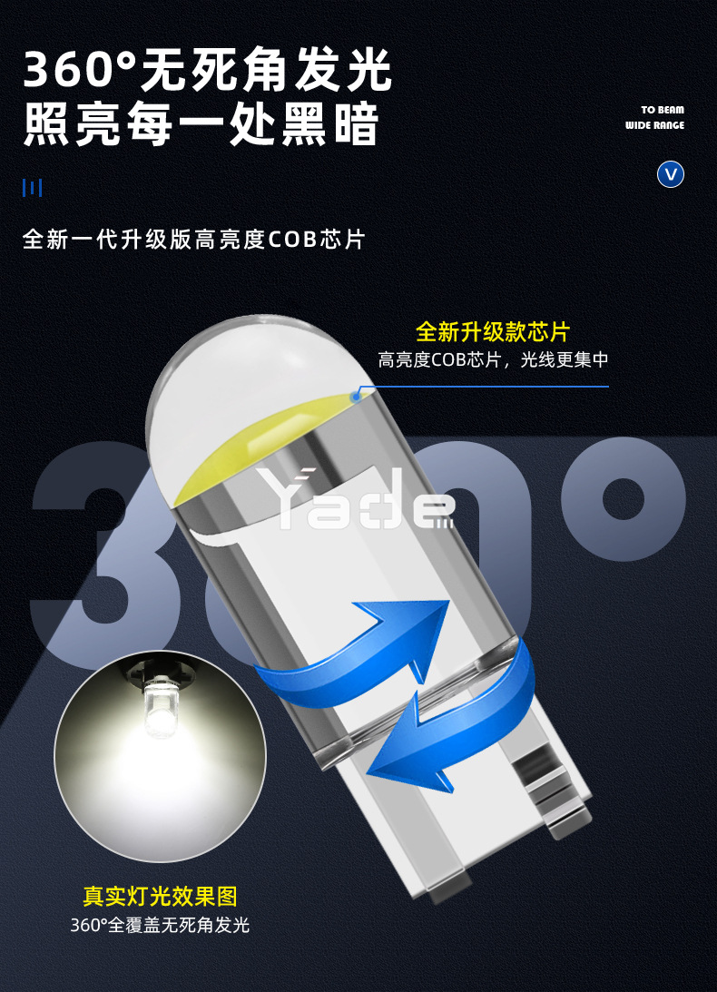 Индикатор ширины автомобиля T10 кристально прозрачный Интегрированный Светодиодный автомобильный светильник COB подсветка W5W лампа для чтения номерного знака