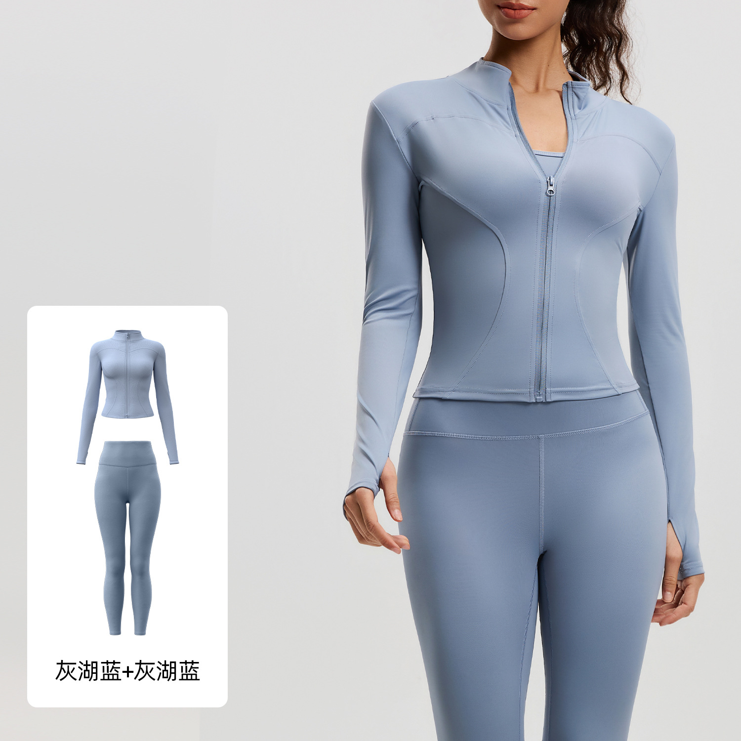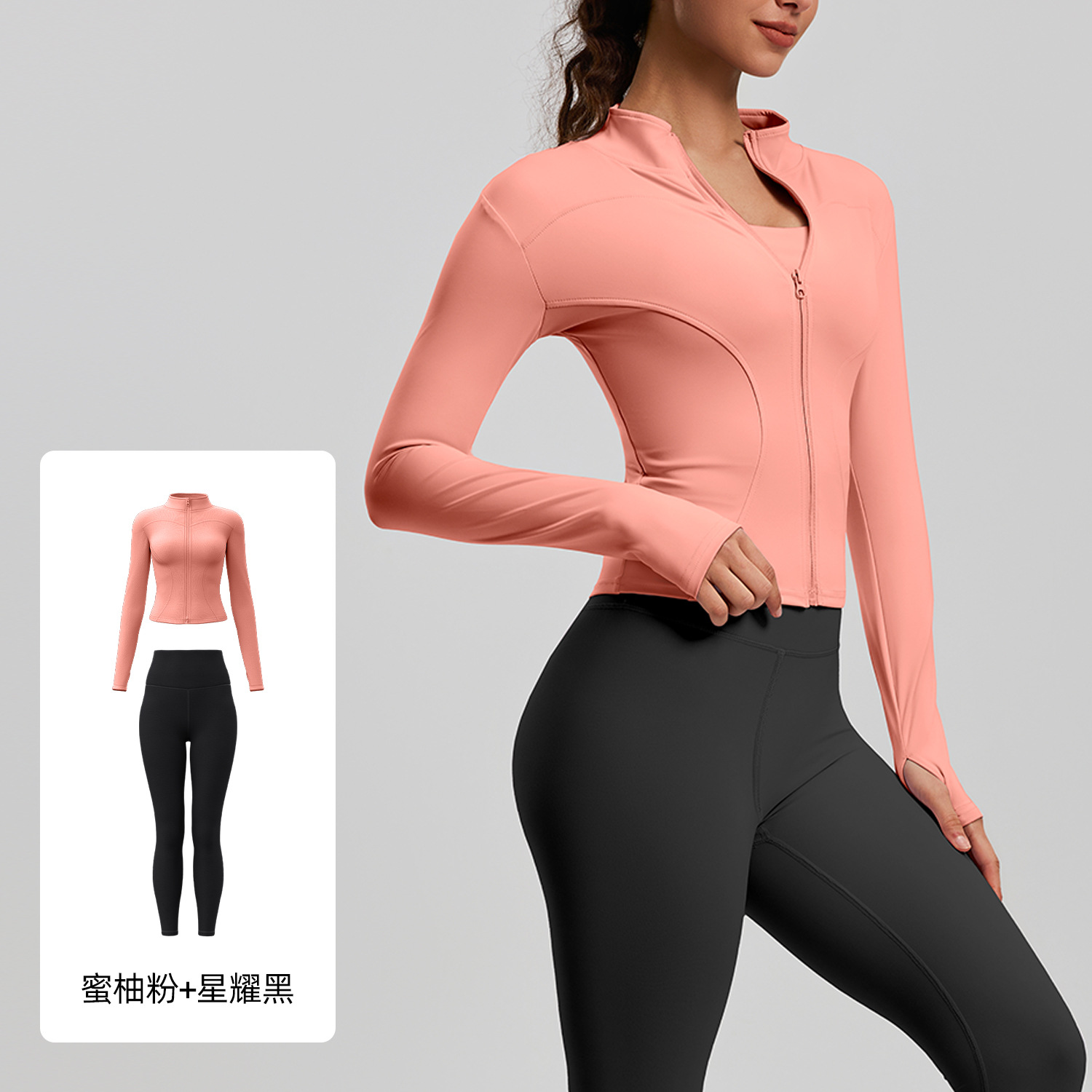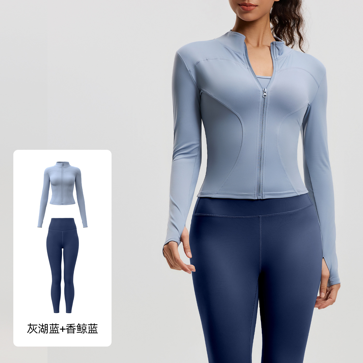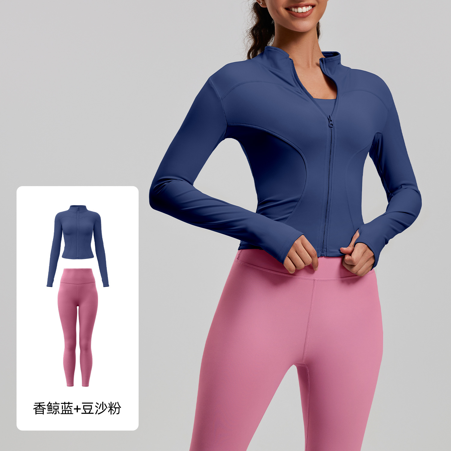 Спортивный костюм Juyitang для йоги и фитнеса: женская эластичная куртка и облегающие брюки с эффектом подтяжки ягодиц