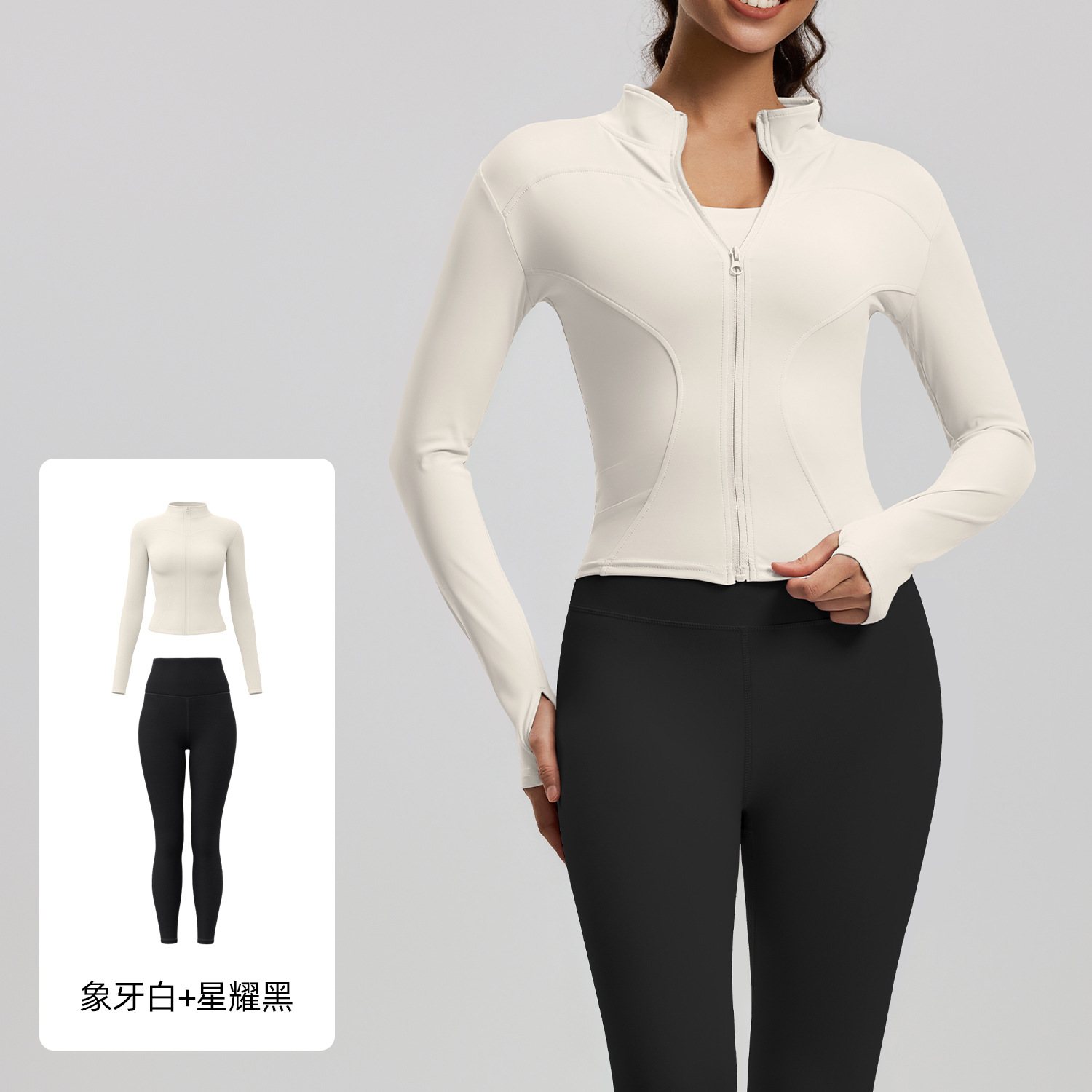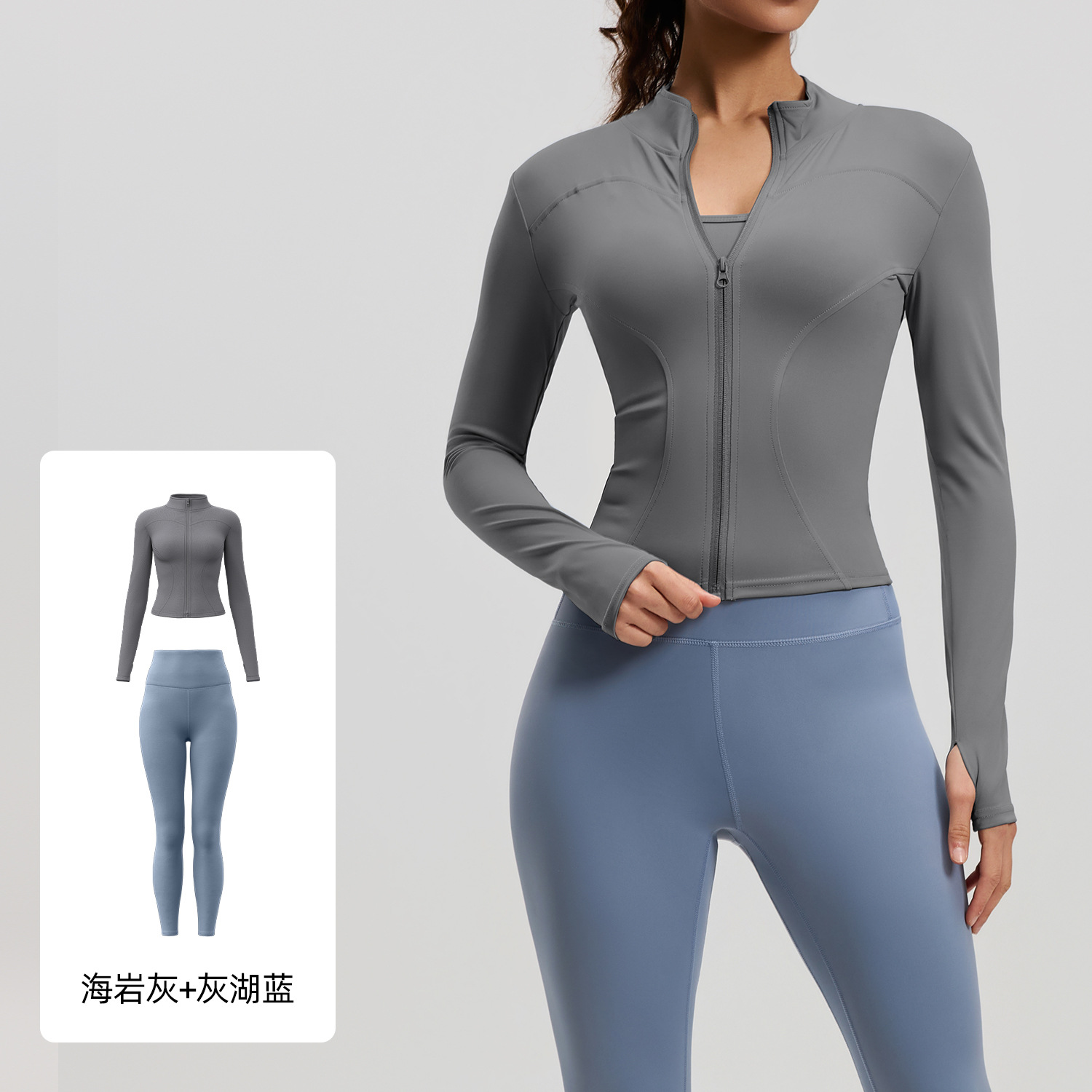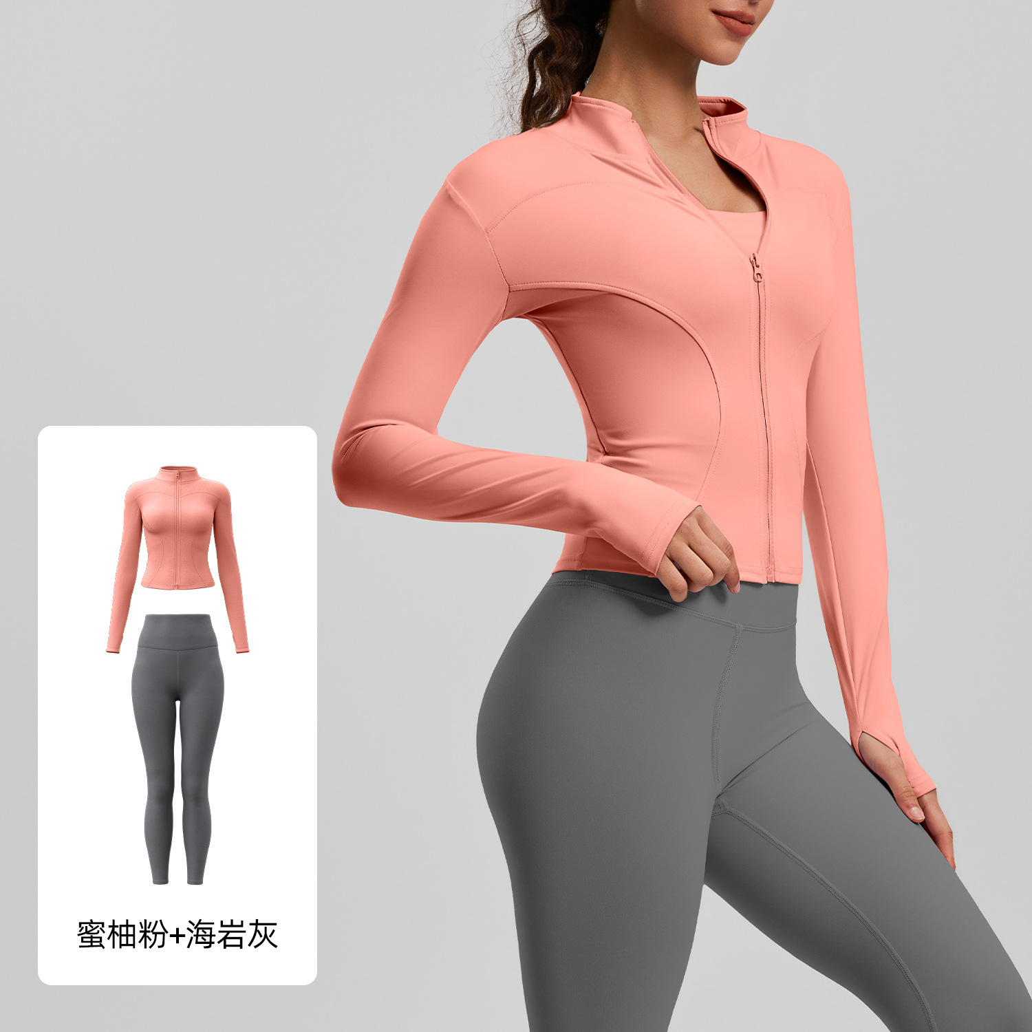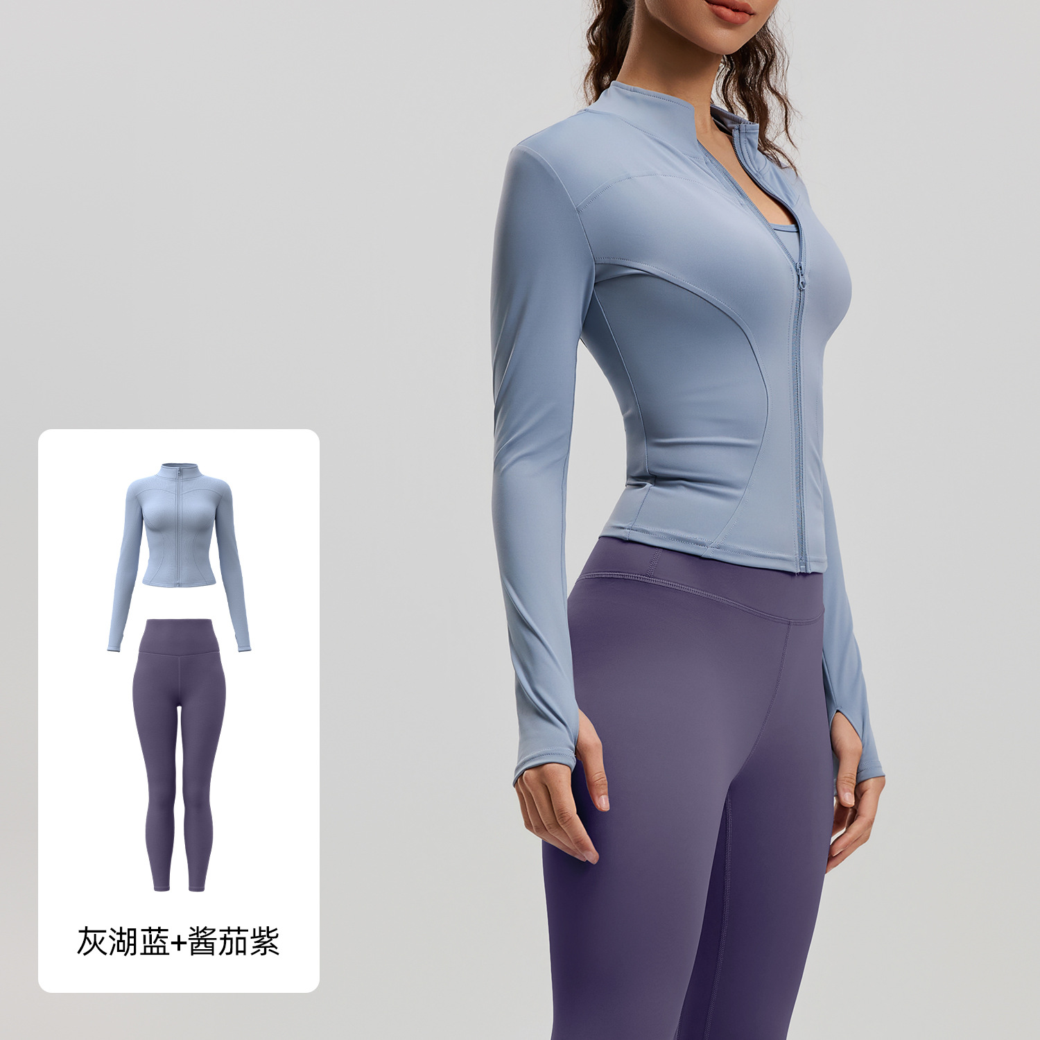 Спортивный костюм Juyitang для йоги и фитнеса: женская эластичная куртка и облегающие брюки с эффектом подтяжки ягодиц