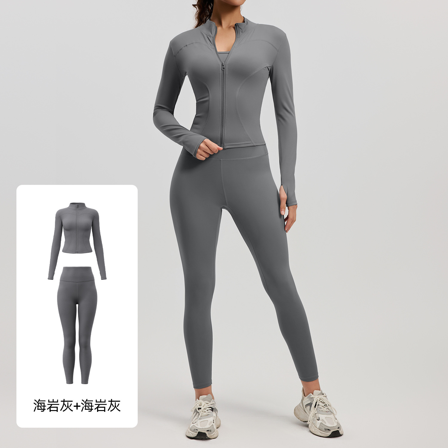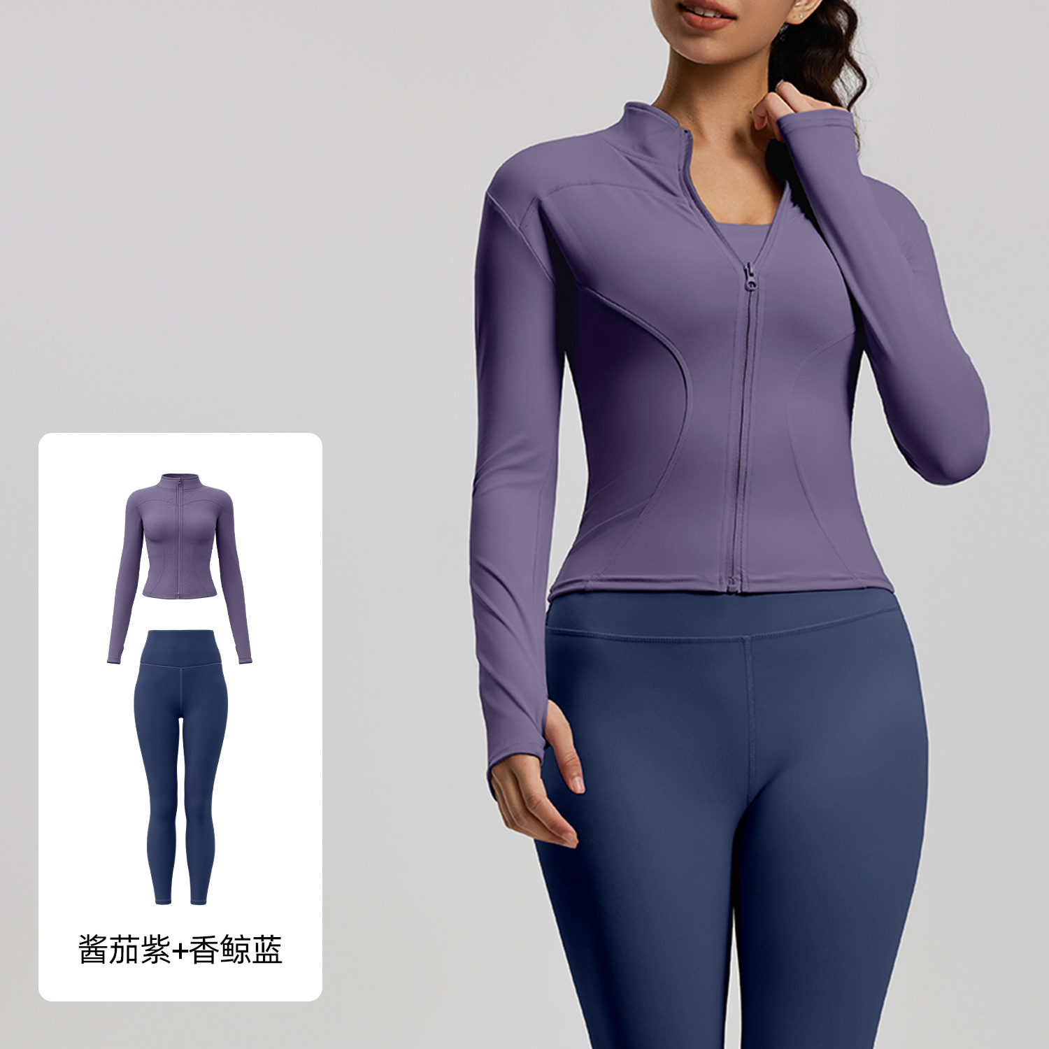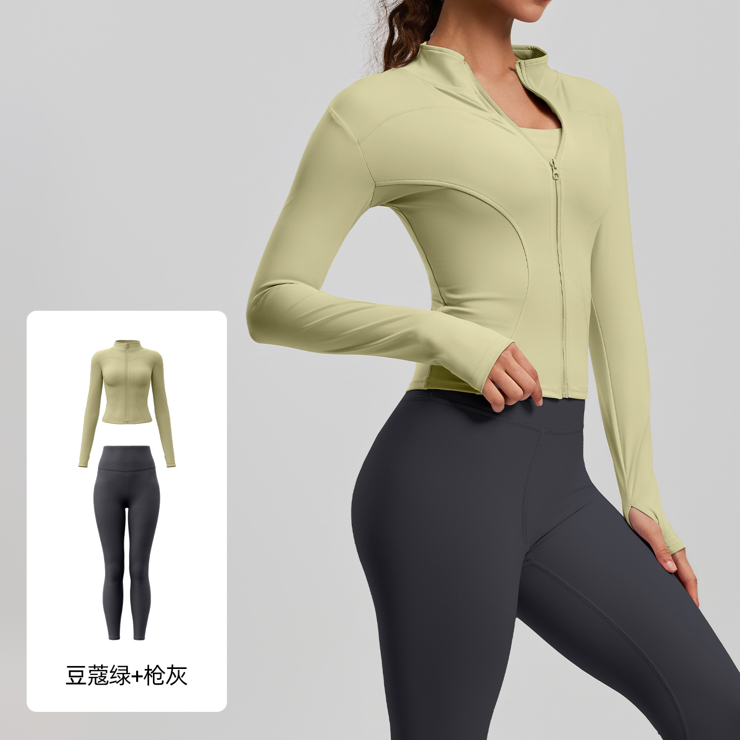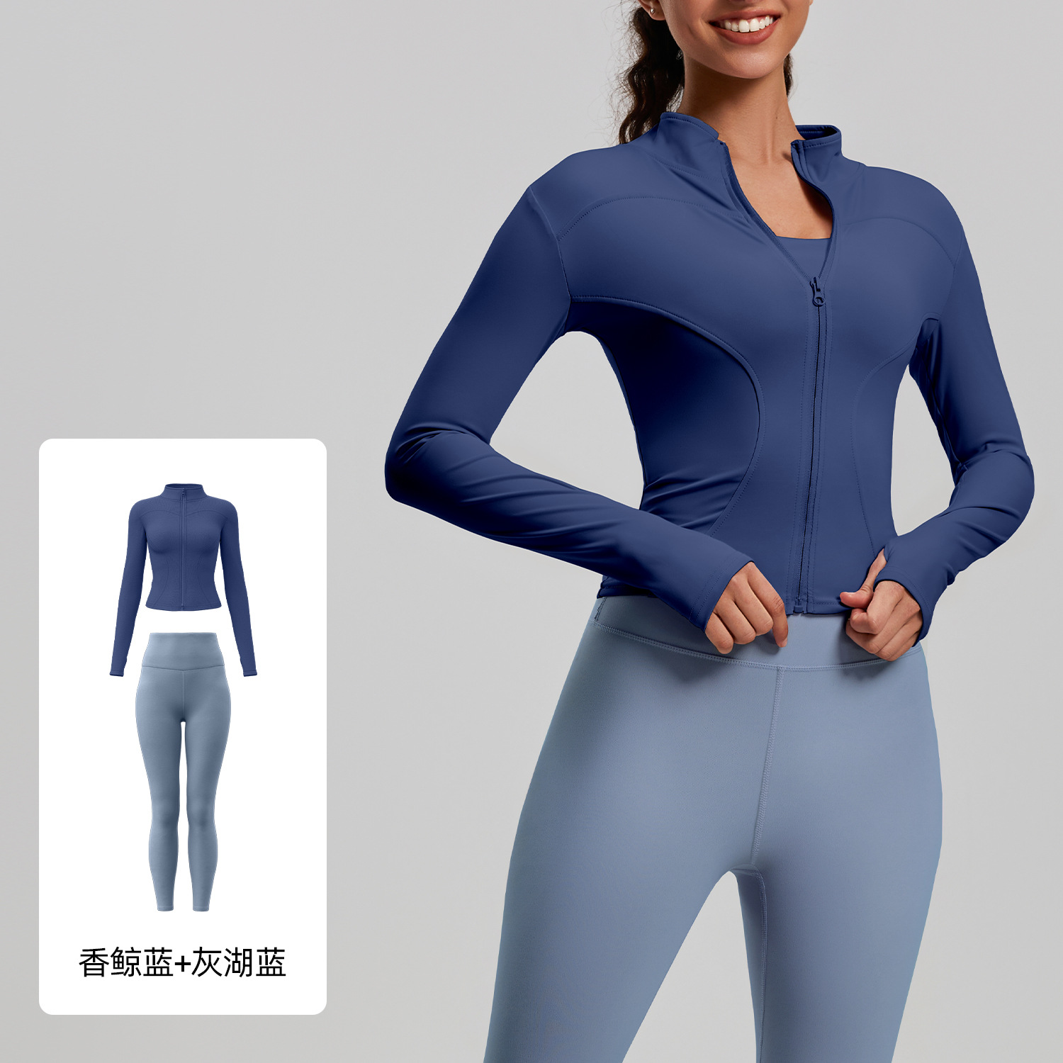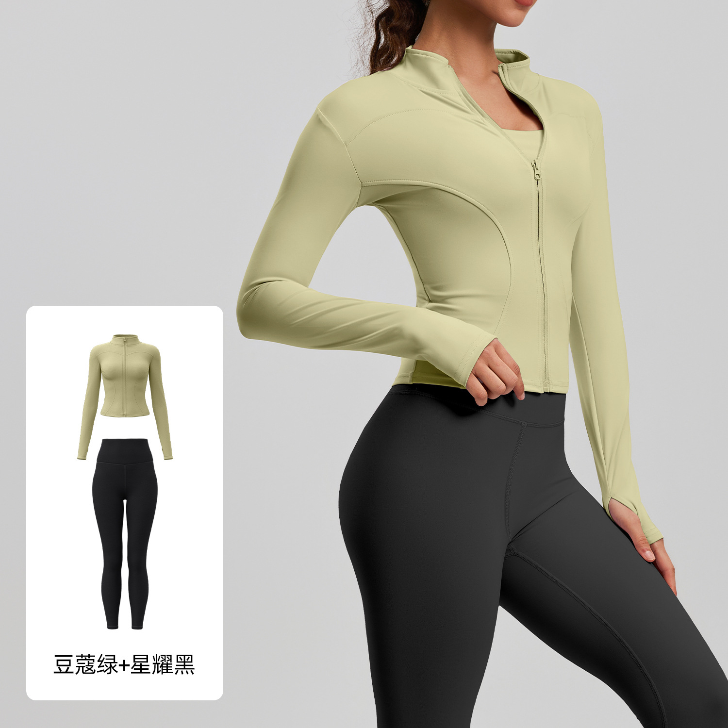 Спортивный костюм Juyitang для йоги и фитнеса: женская эластичная куртка и облегающие брюки с эффектом подтяжки ягодиц