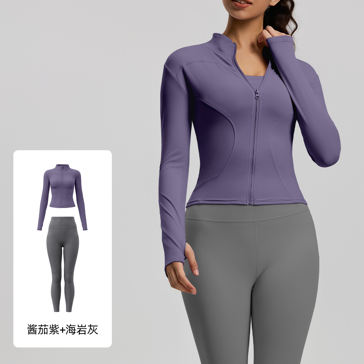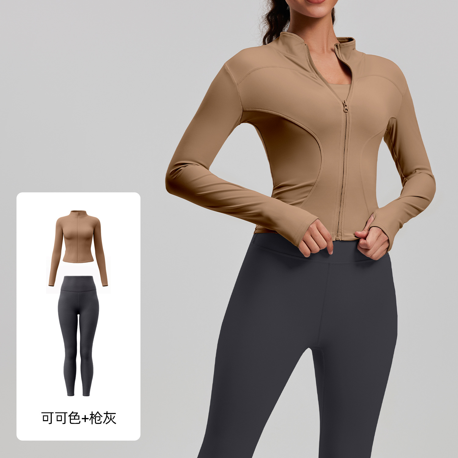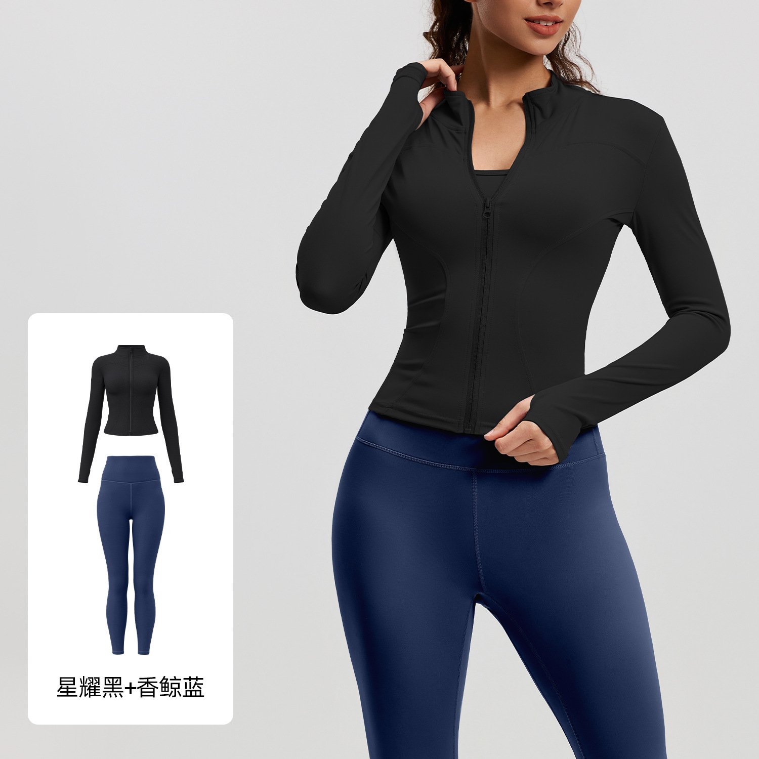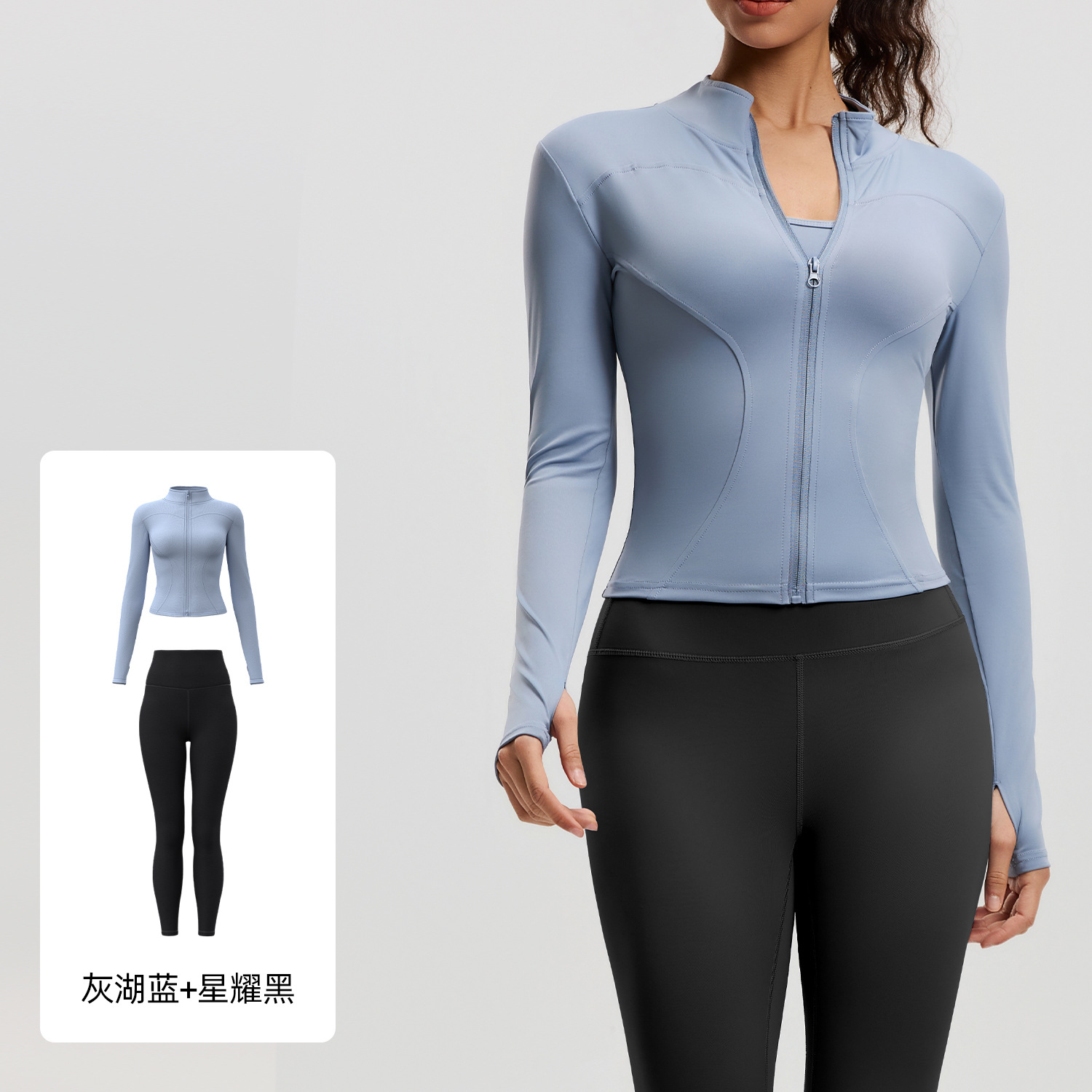 Спортивный костюм Juyitang для йоги и фитнеса: женская эластичная куртка и облегающие брюки с эффектом подтяжки ягодиц