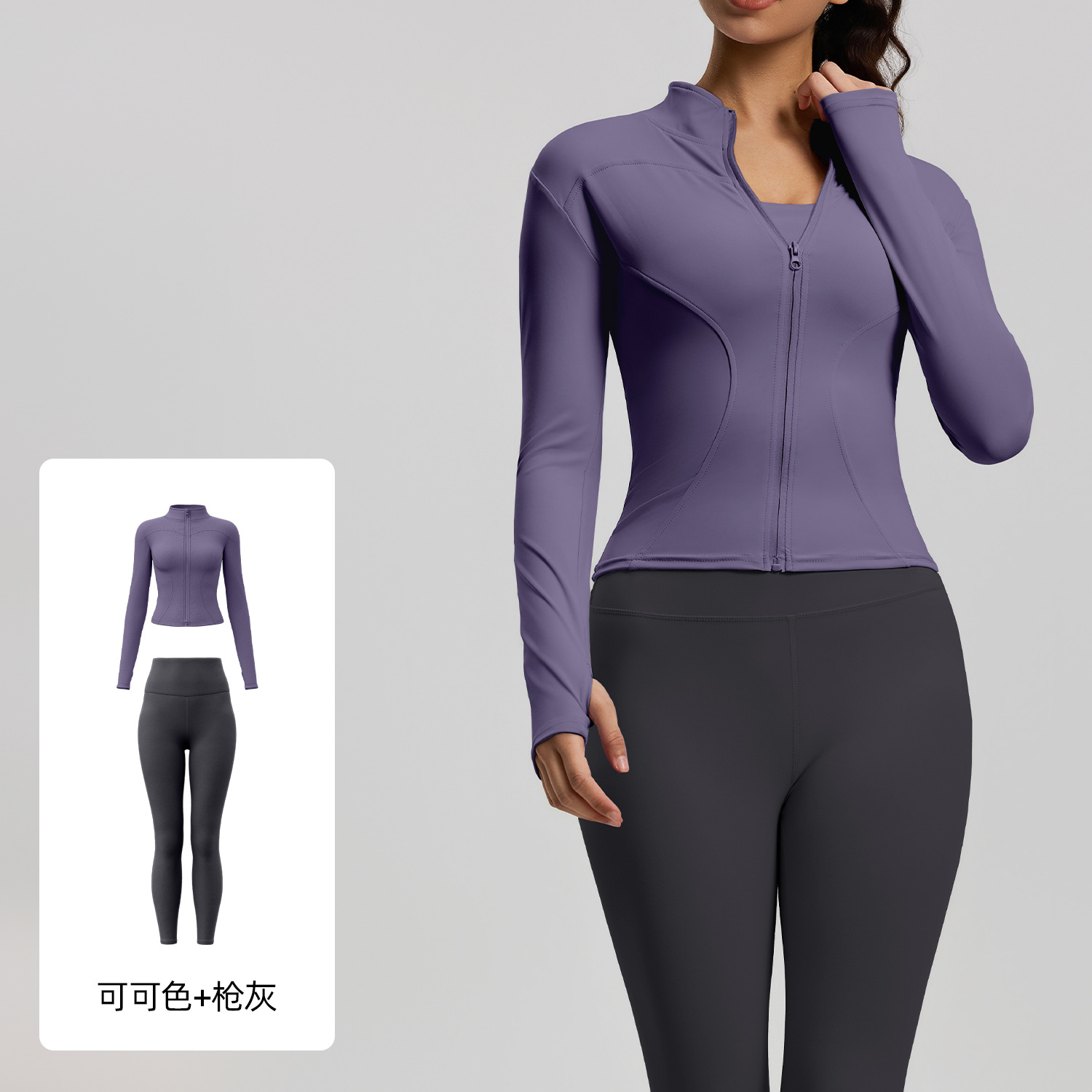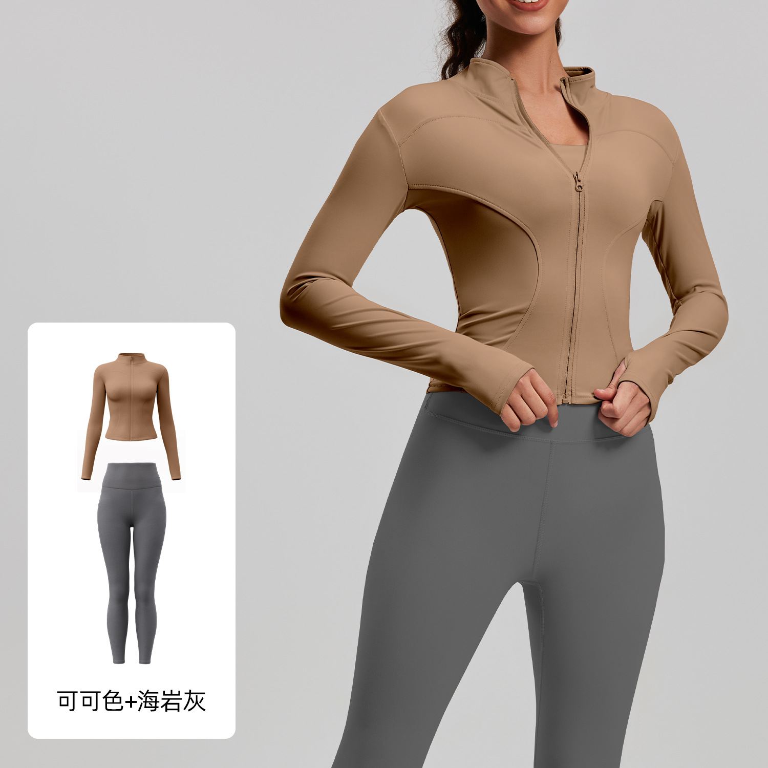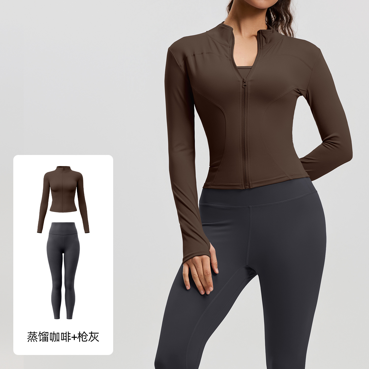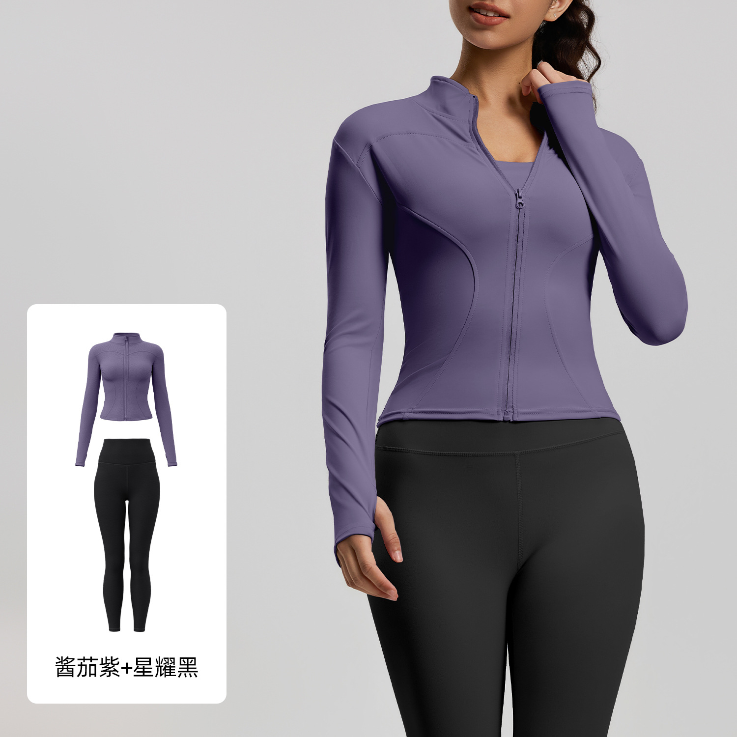 Спортивный костюм Juyitang для йоги и фитнеса: женская эластичная куртка и облегающие брюки с эффектом подтяжки ягодиц