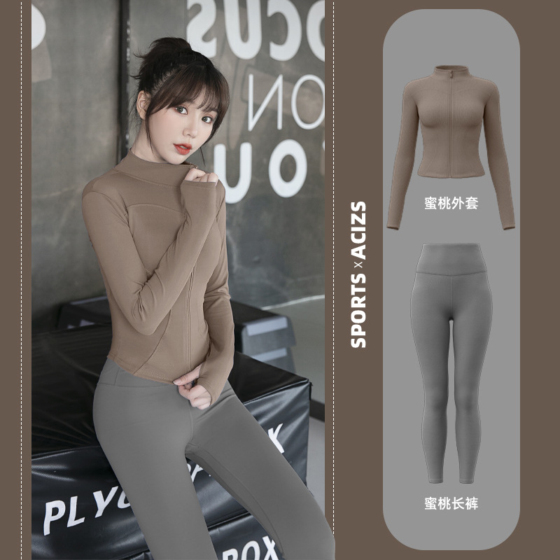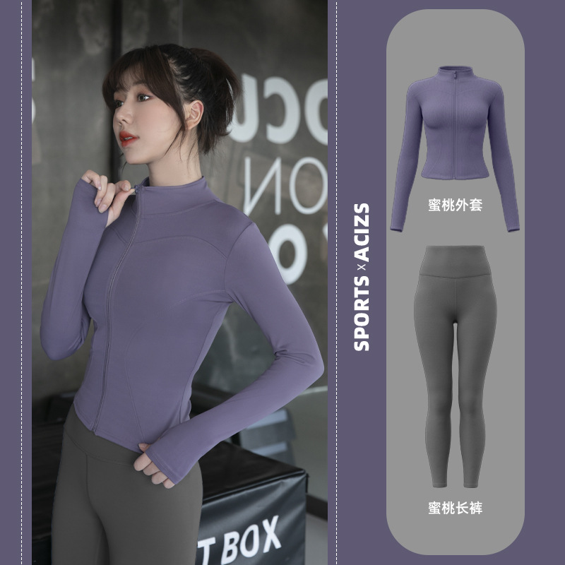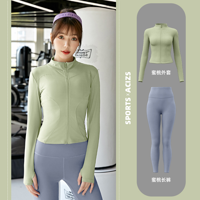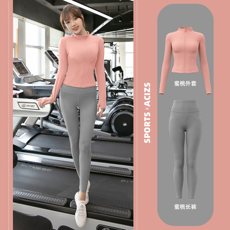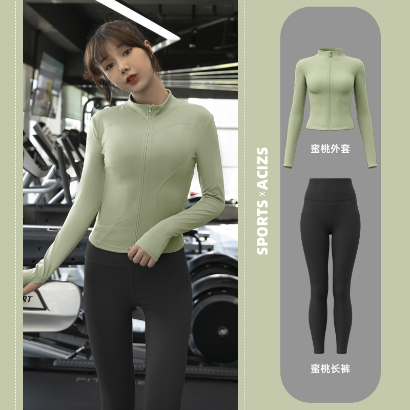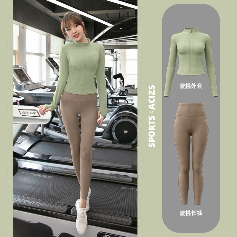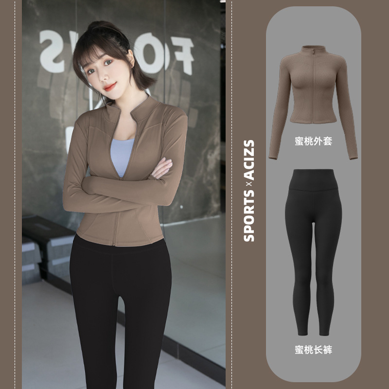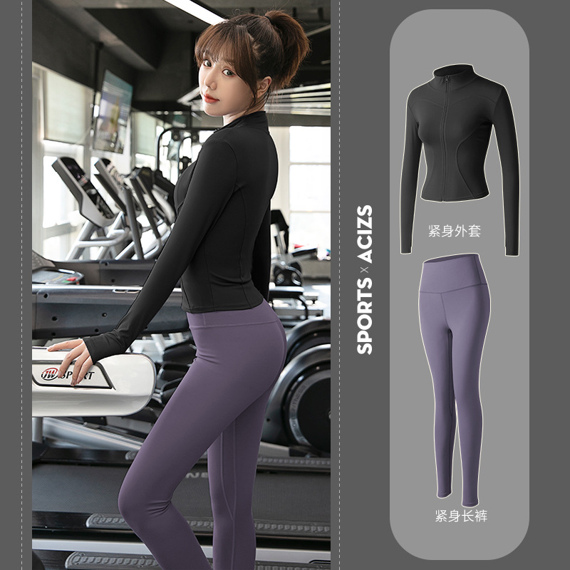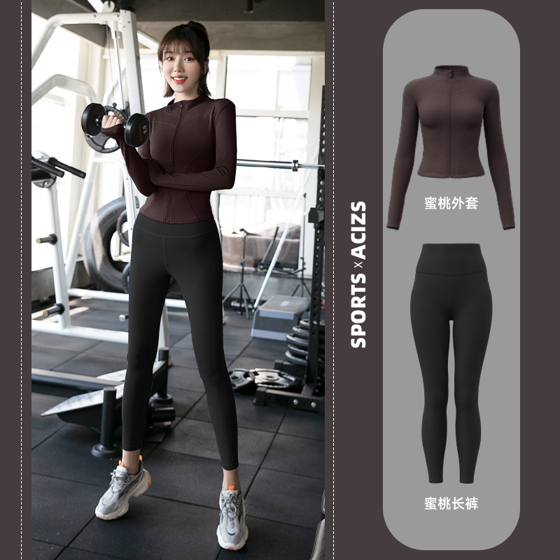 Женская одежда для йоги Juyitang, одежда для бега в тренажерном зале, спортивные куртки с длинными рукавами, облегающие брюки, подтягивающие ягодицы, одежда для фитнеса.