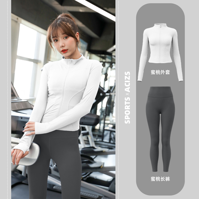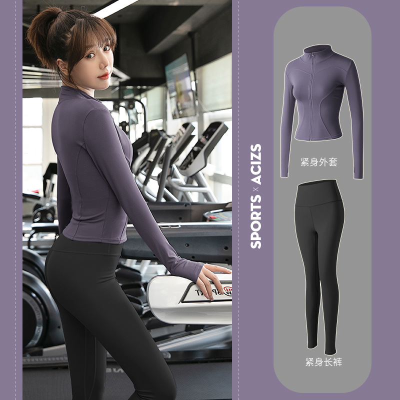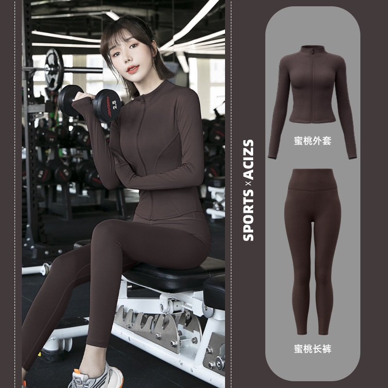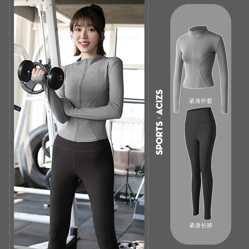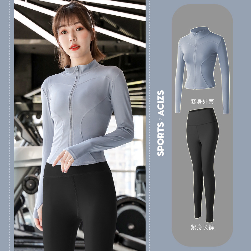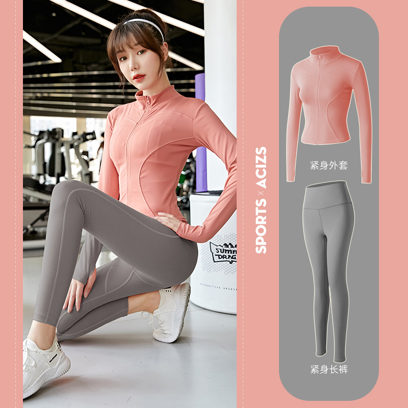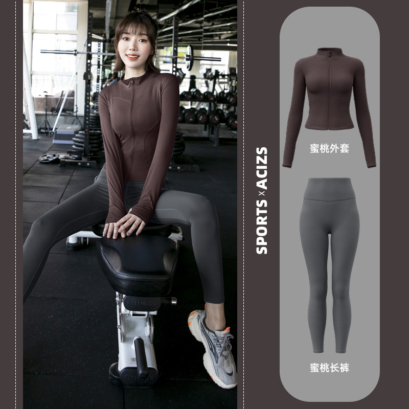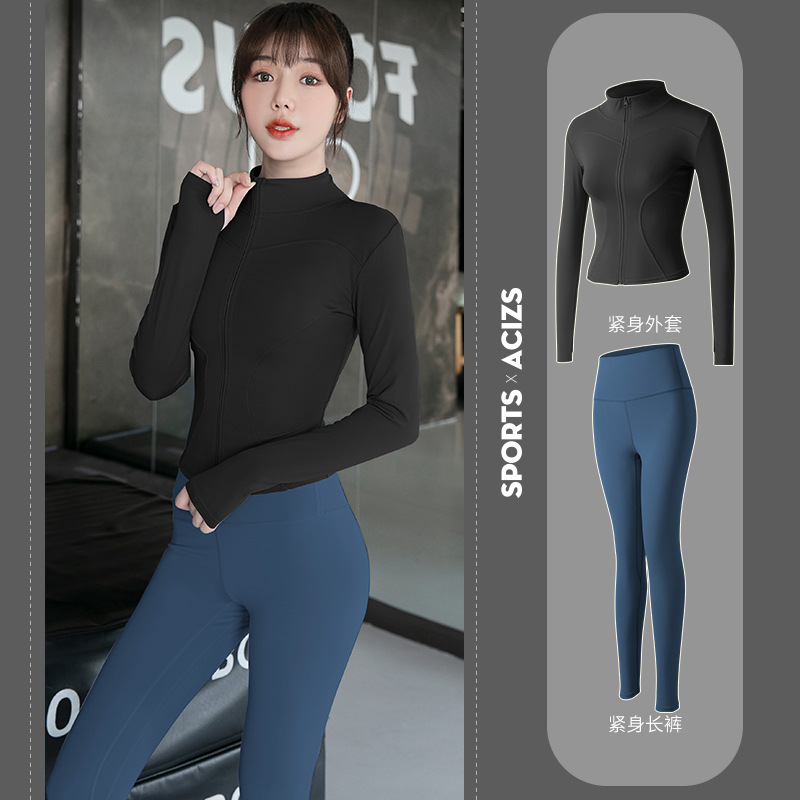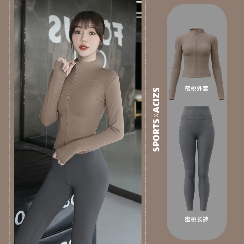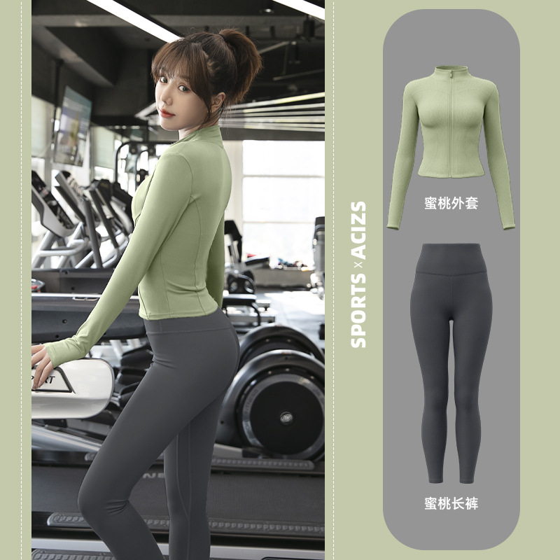 Женская одежда для йоги Juyitang, одежда для бега в тренажерном зале, спортивные куртки с длинными рукавами, облегающие брюки, подтягивающие ягодицы, одежда для фитнеса.