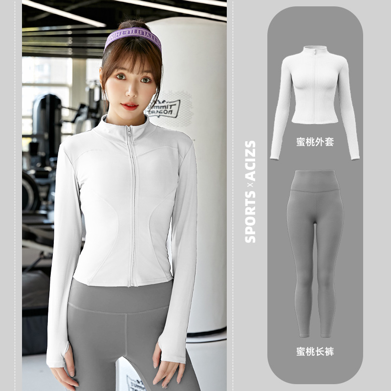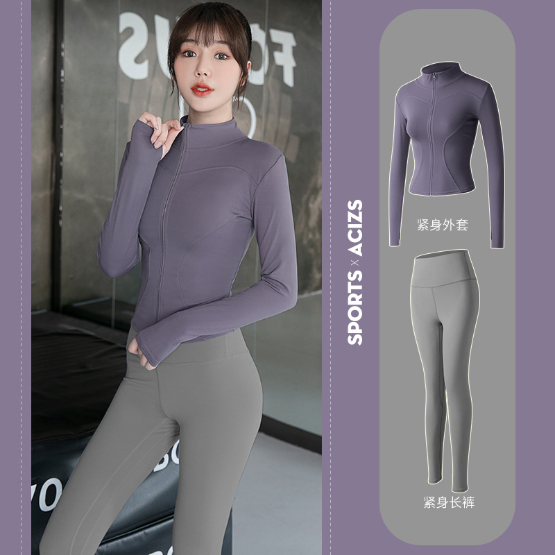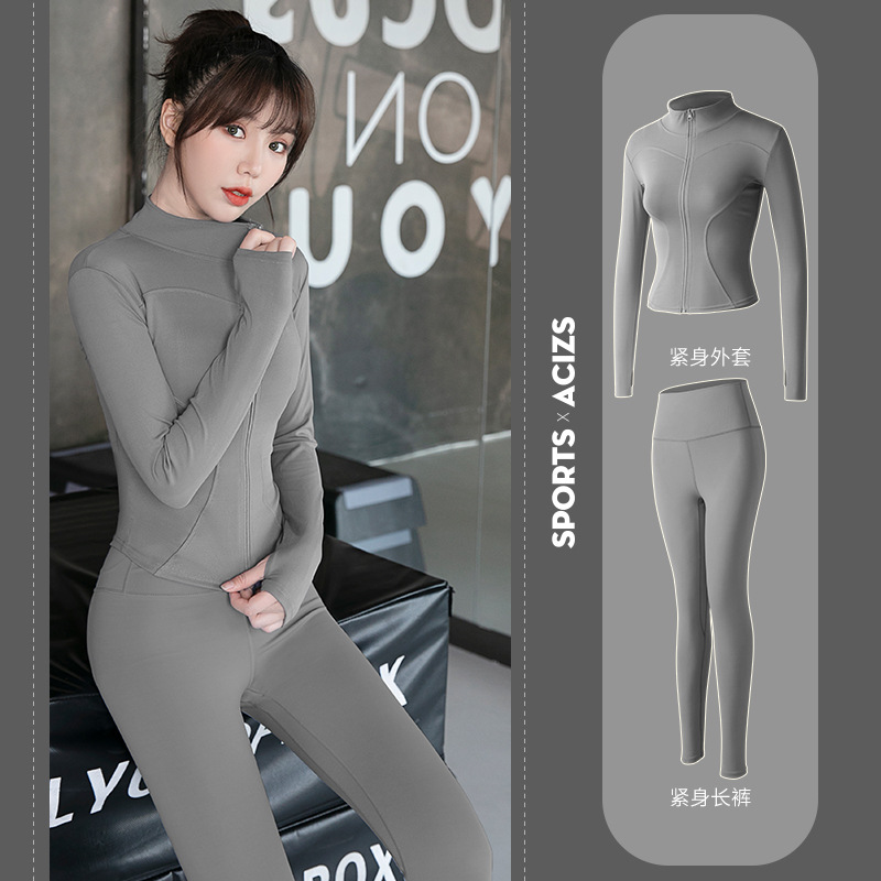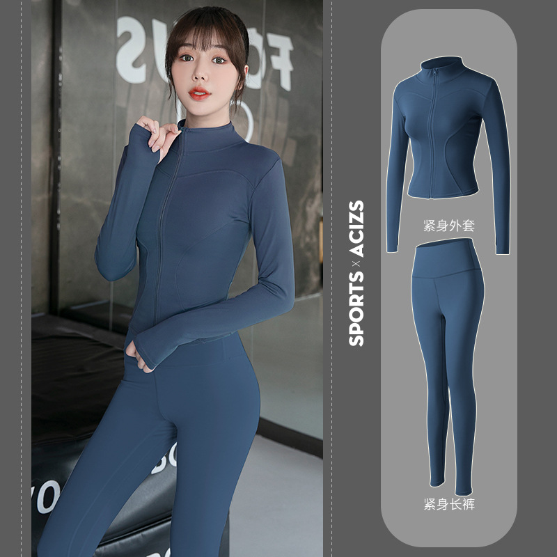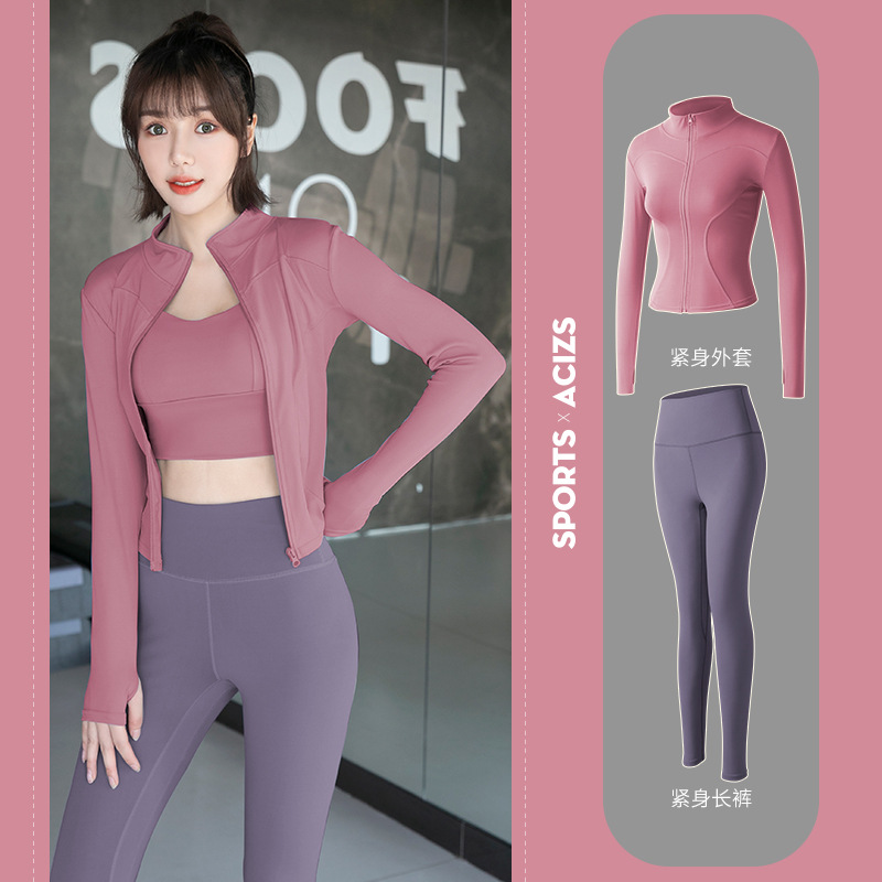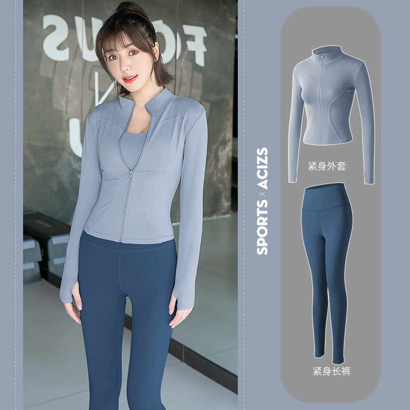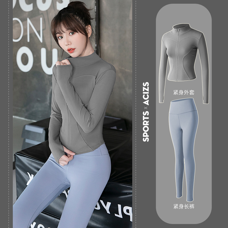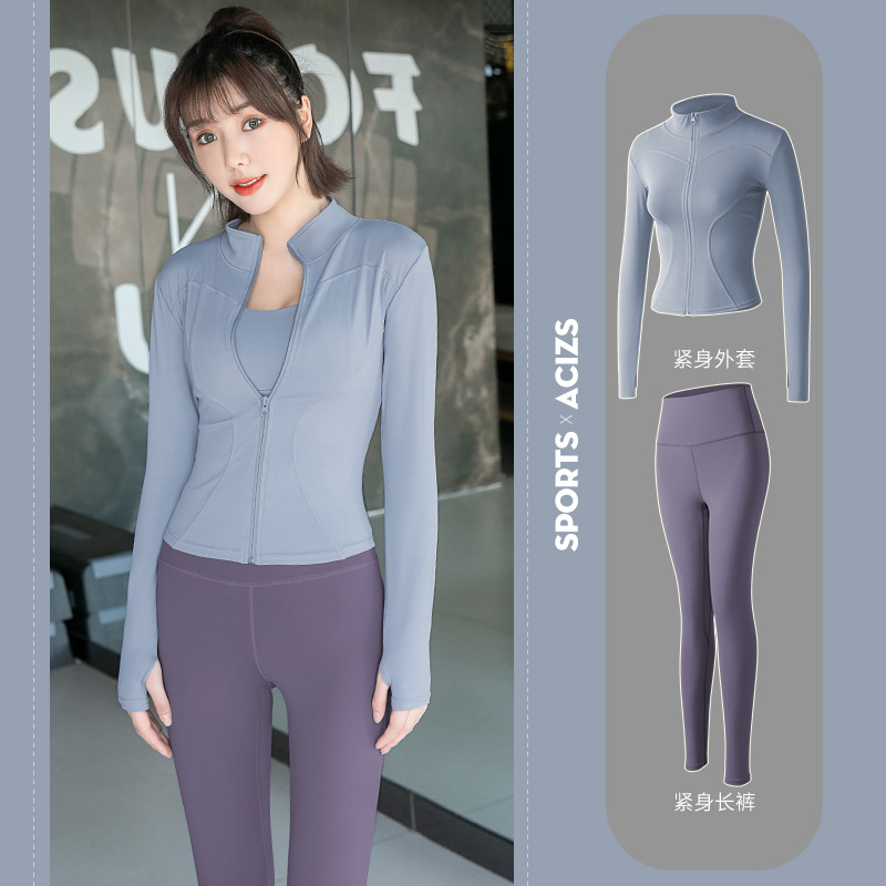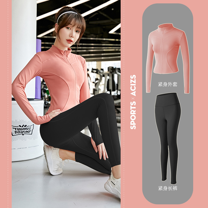 Женская одежда для йоги Juyitang, одежда для бега в тренажерном зале, спортивные куртки с длинными рукавами, облегающие брюки, подтягивающие ягодицы, одежда для фитнеса.
