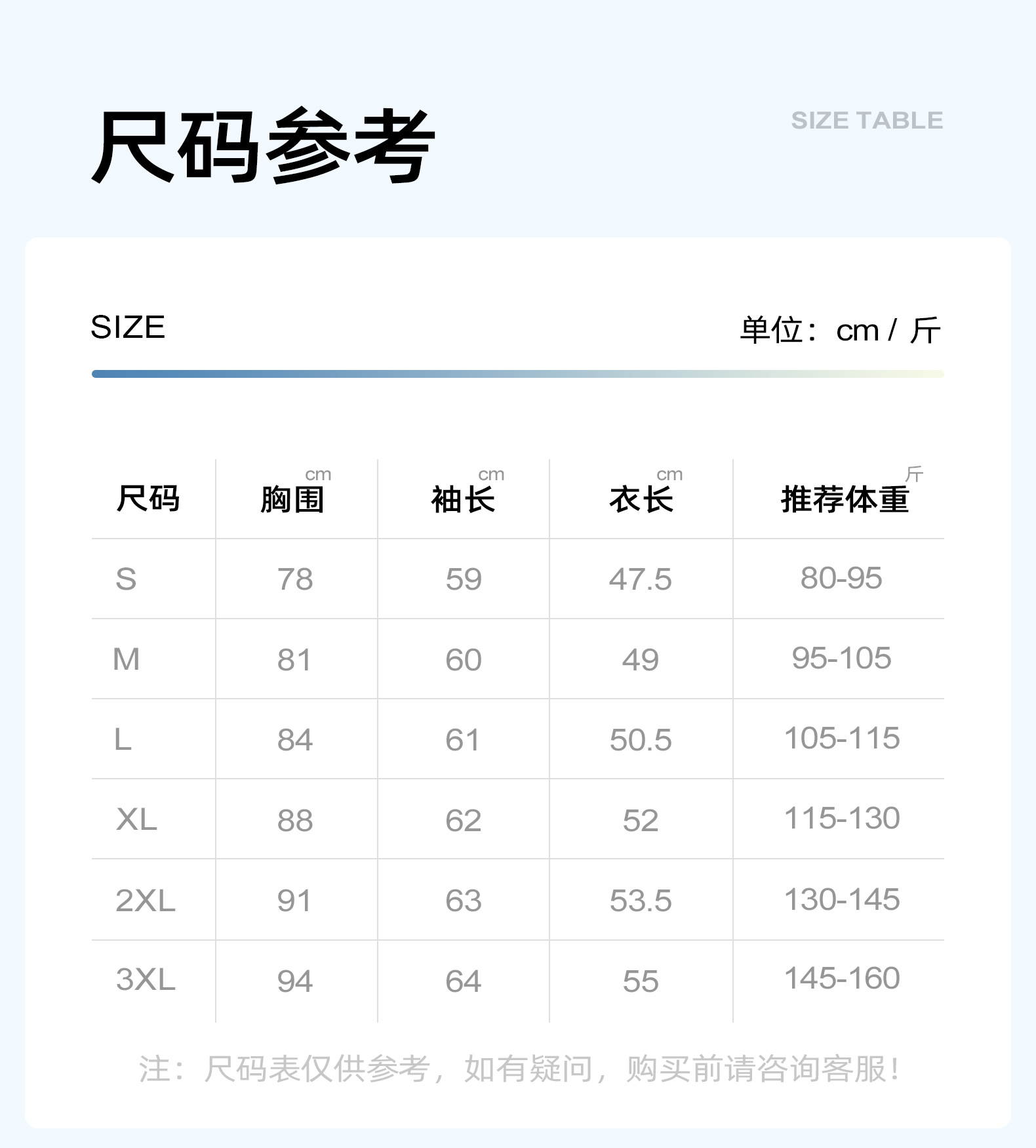 S; M; L; XL; XXL; XXXL