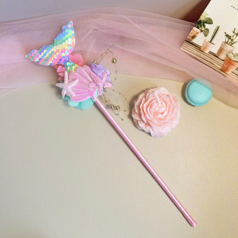 Трансграничные дети русалка хвост фея палка для девочек шоу блесток