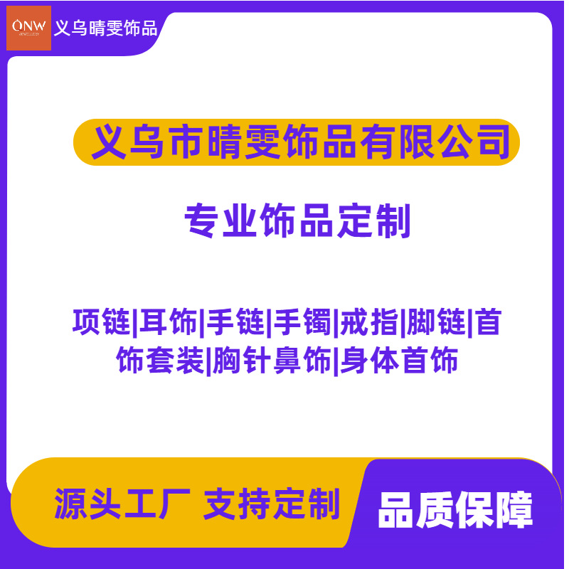 1.晴雯饰品可以定制耳钉、耳夹、耳坠、耳挂、项链、戒指、手链手镯、胸针别针、脚链、腰链、脚戒、套装首饰、鼻夹、肚脐钉、舌钉等多种类型;材质可以选择合金、不锈钢、钛钢、铜、树脂、亚克力、水钻、锆石等;饰品也可以定制多种颜色。