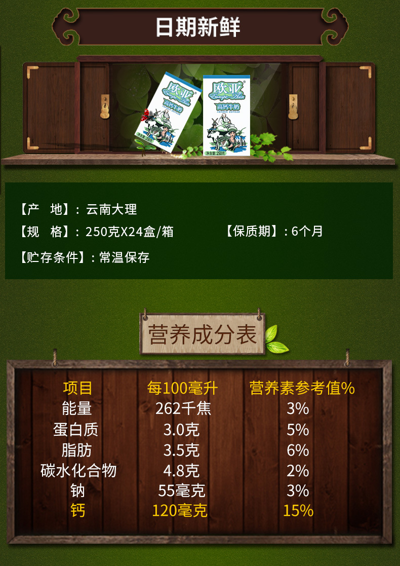 Молоко цельное высококальциевое, свежее, с указанием даты производства, 250 г * 24 коробки/упаковка, целая коробка, молочный продукт для завтрака