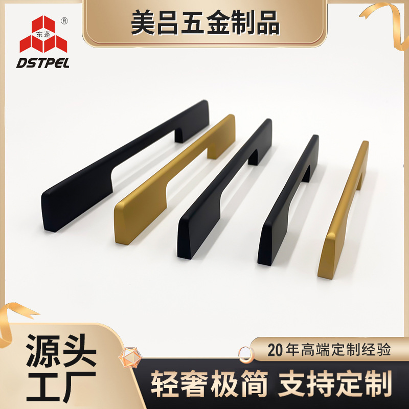 Ручка для мебели из алюминиевого сплава на заказ, современная минималистичная ручка для ящиков и шкафов, ЧПУ, черно-золотая