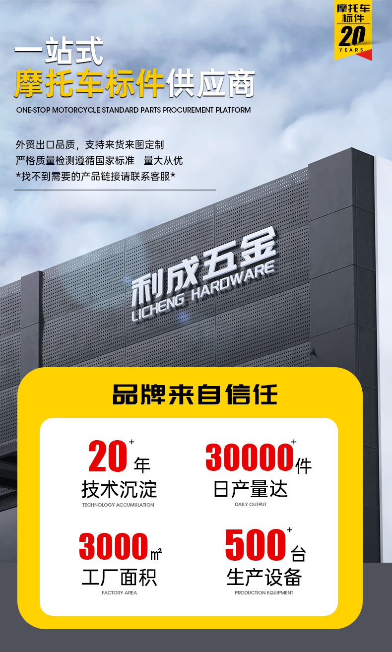 利成五金专注生产摩托车、电动车螺栓、改装配件,我们生产的产品可应用于摩托车、汽车、自动车等改装。