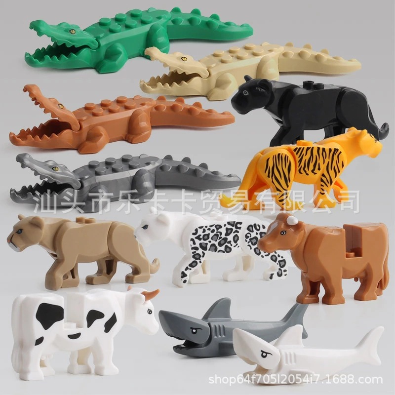 Трансграничные новые строительные блоки животных головоломки собраны подарки моделирование тигровая акула крокодил Жираф орангутан КИТ корова