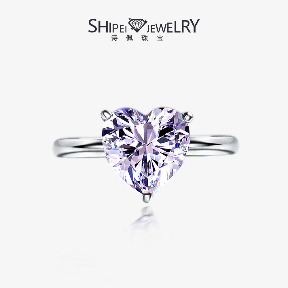 Shipei Новое 4-каратное кольцо в форме сердца 10*10 с высокоуглеродистым бриллиантом Любовь Европа и Америка Простое атмосферное кольцо из серебра 925 пробы