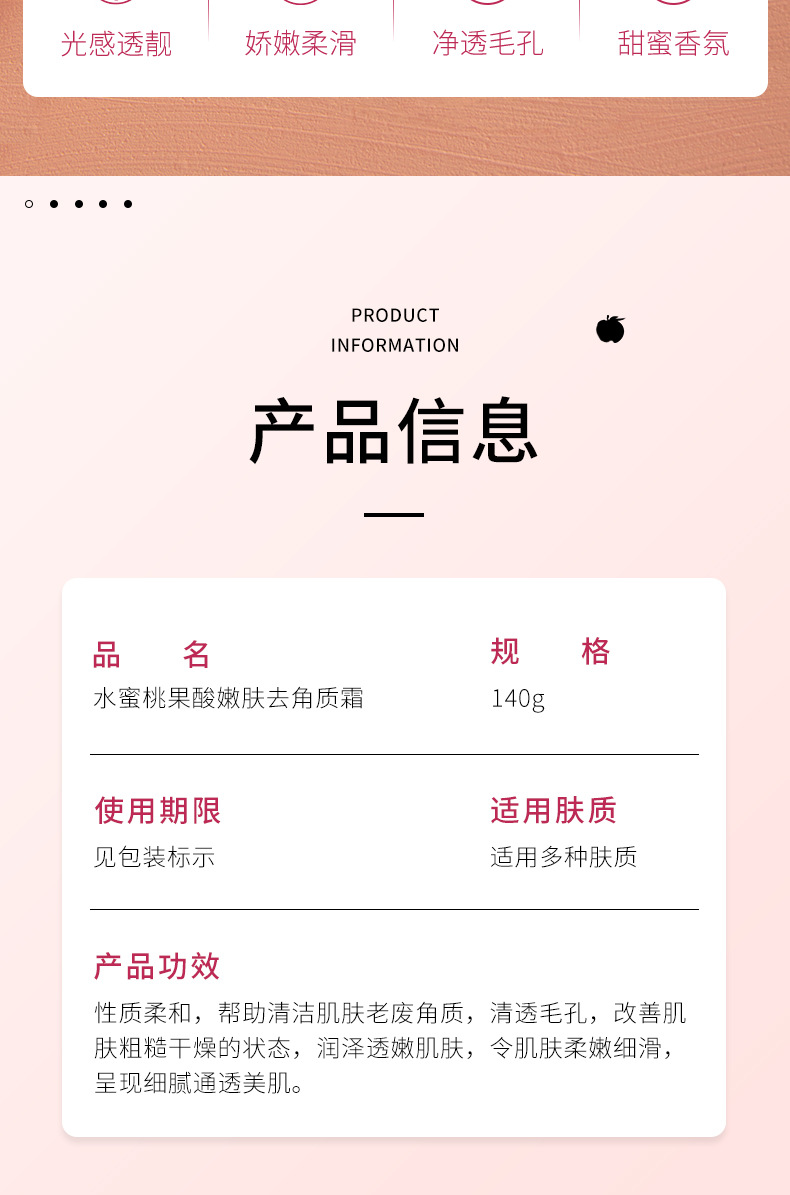 Отшелушивающий крем Boquan Ya с персиковой фруктовой кислотой Гладкий увлажняющий нежный увлажняющий свежий и нежный уход за лицом