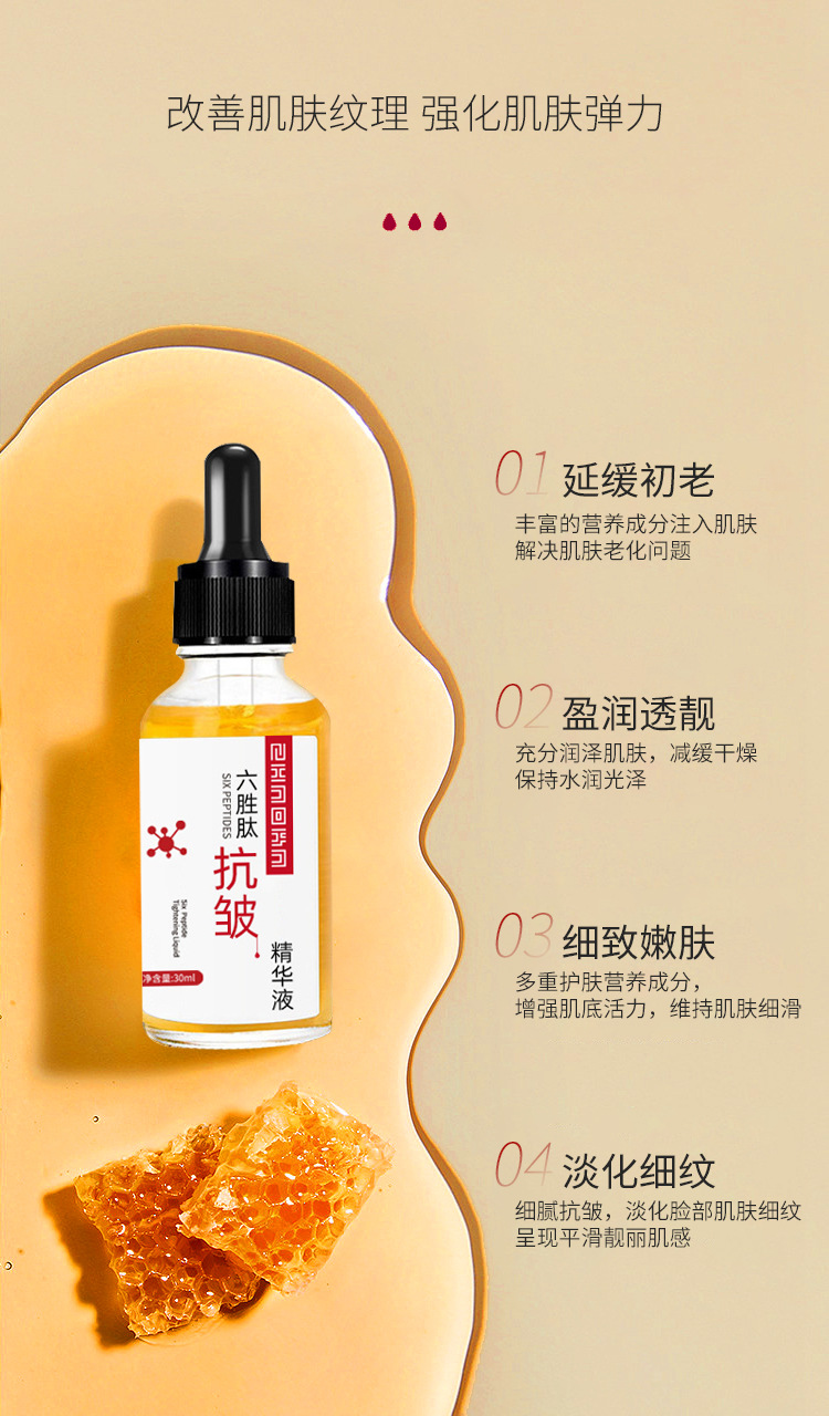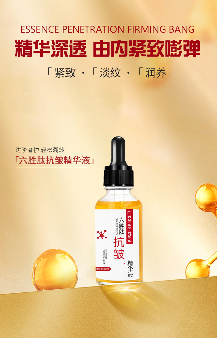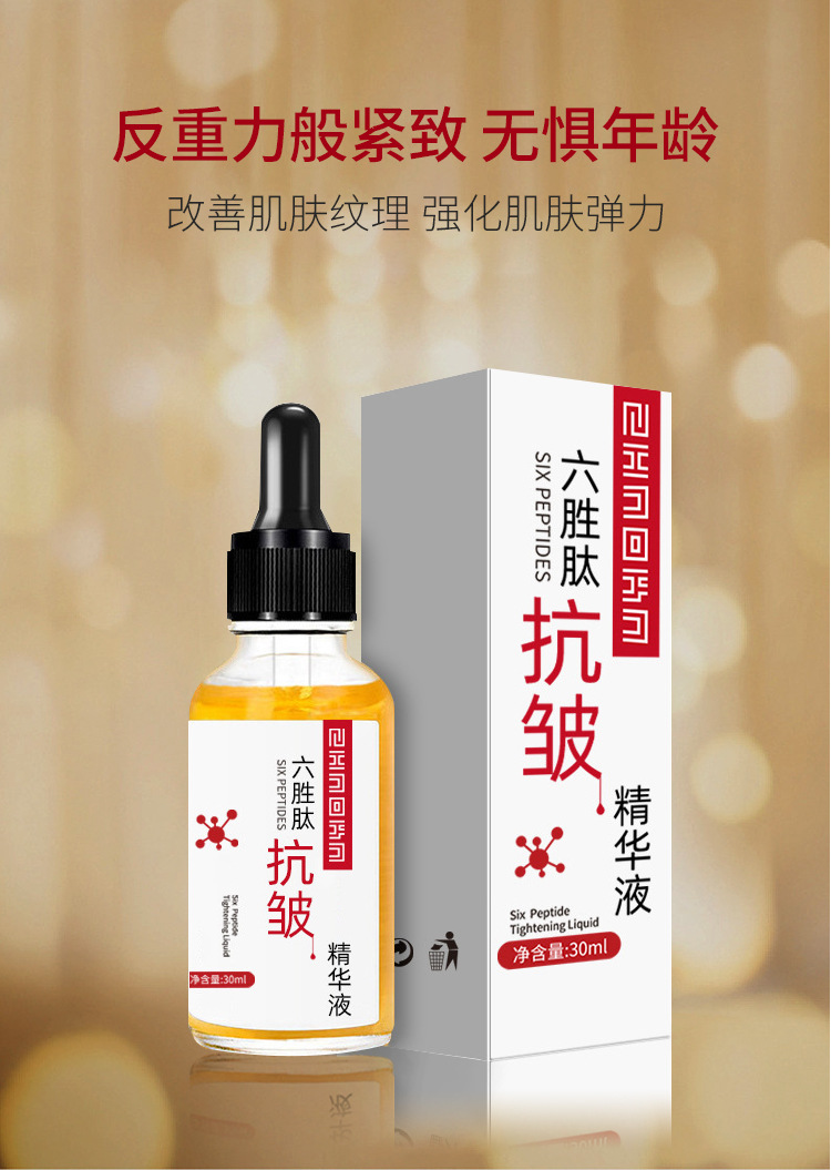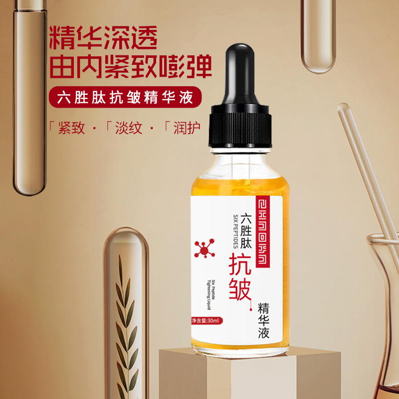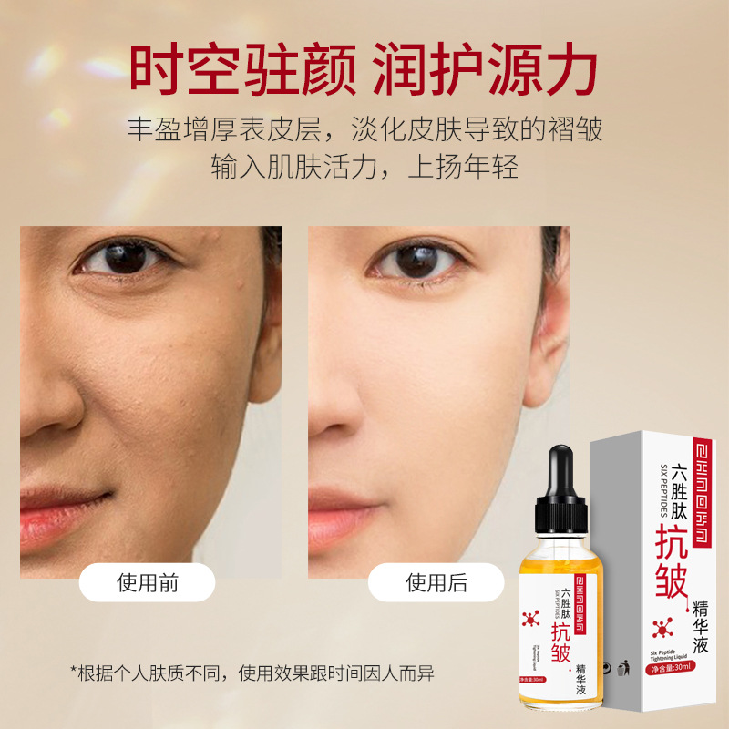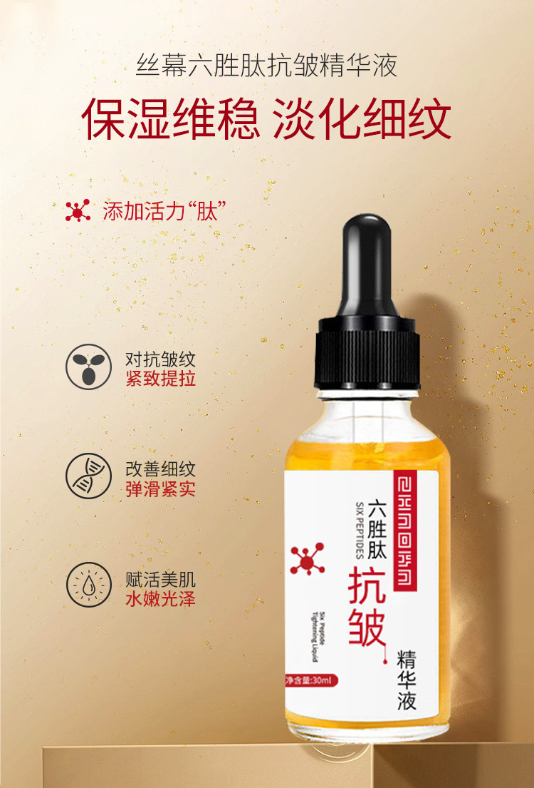 Шелковый занавес Шесть пептидов Сущность против морщин Термоусадочная поры Tighteness Увлажняющая эссенция для лица Шесть пептидов Жидкость против морщин