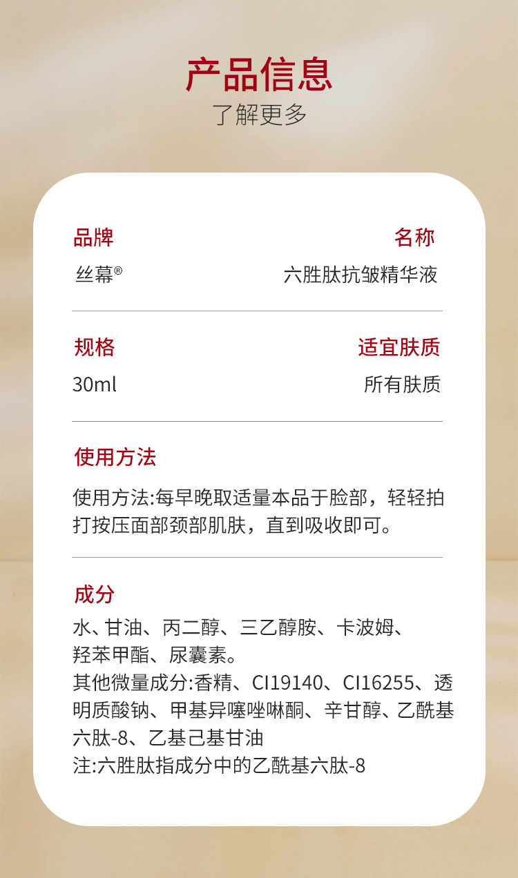 【产品名称】SIMU丝幕六胜肽抗皱精华液