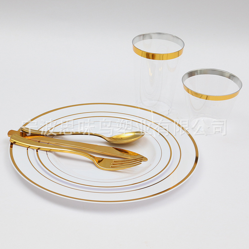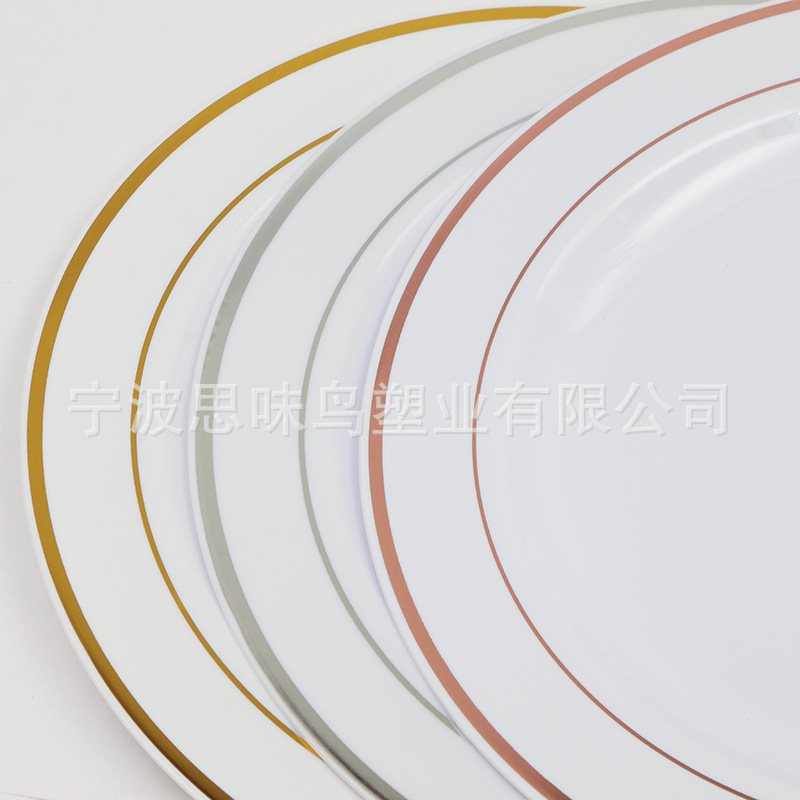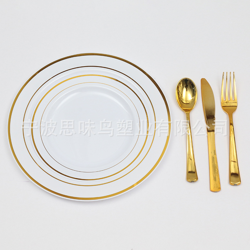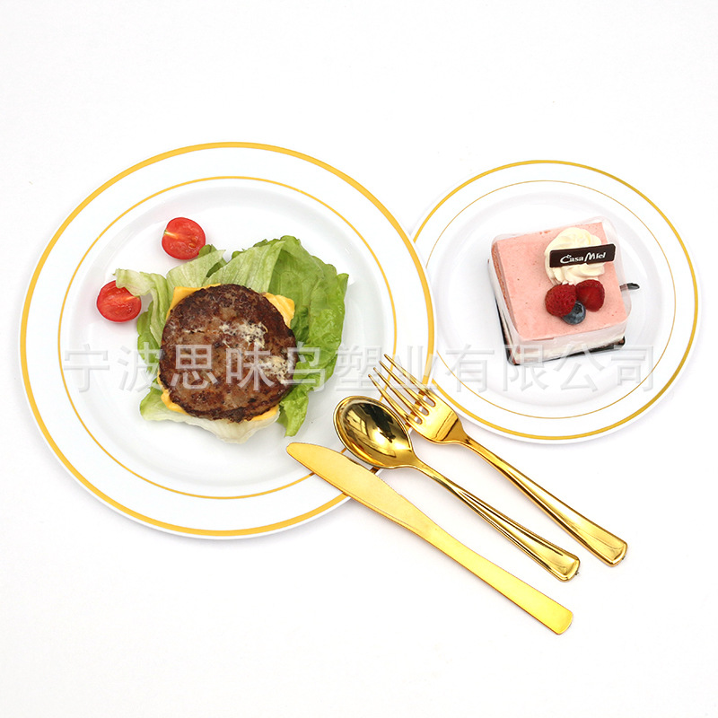 Одноразовая бронзовая пластиковая твердая тарелка для Западной вечеринки утолщенная обеденная тарелка на открытом воздухе Дорожная посуда без стирки оптом
