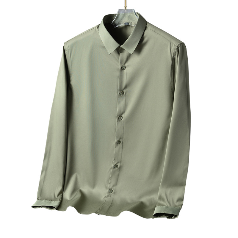 Новая рубашка мужская без складок против морщин, весна-лето, мужская деловая Тонкая Повседневная однотонная эластичная Мужская рубашка с длинными рукавами