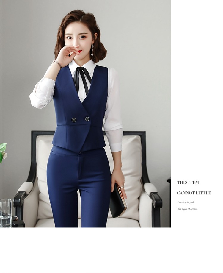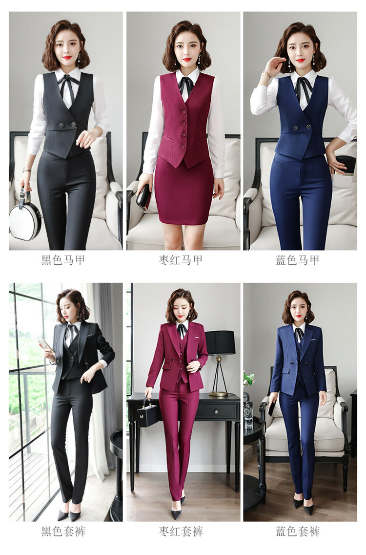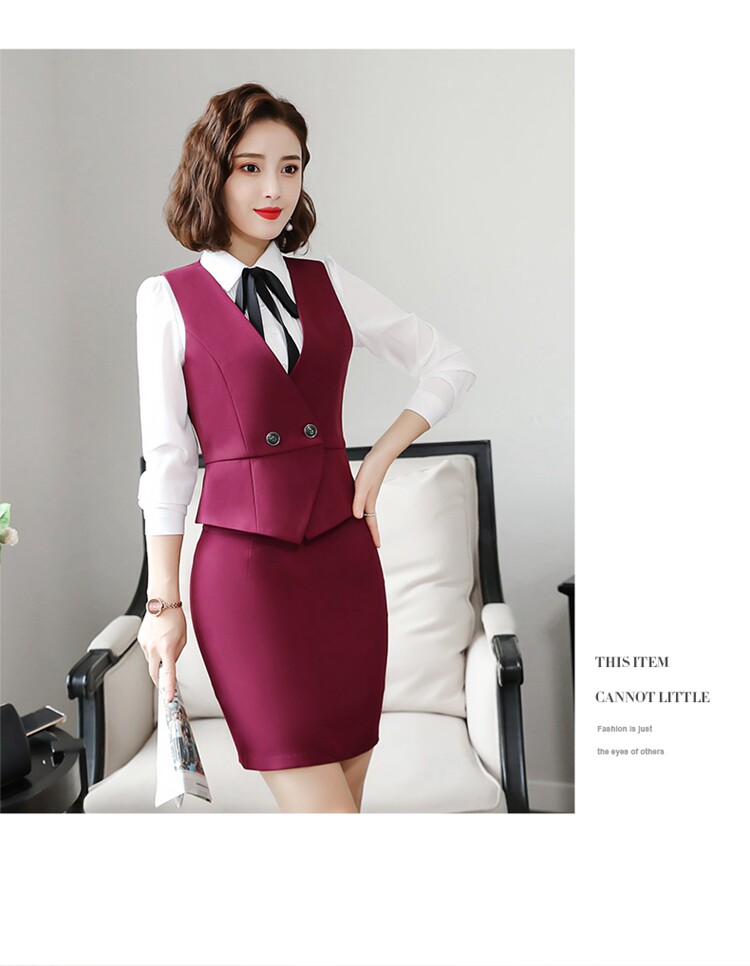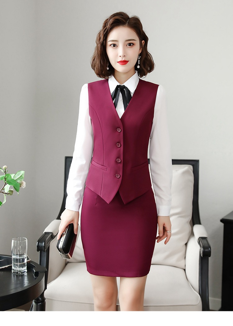 Черный костюм-слиток; Синий цельный костюм,; Цельный костюм цвета красного вина; Черный костюм + брюки; Черный костюм + юбка; Синий костюм + брюки; Синий костюм + юбка; Бордовый костюм + брюки; Бордовый костюм + юбка; Белая рубашка; Черный жилет; Красное вино жилет; Синий жилет; Черная Юбка; Синяя юбка; Вино Красная юбка; 8901 черный жилет; 8901 темно-синий жилет; Черные брюки; Синие брюки; Красное вино брюки