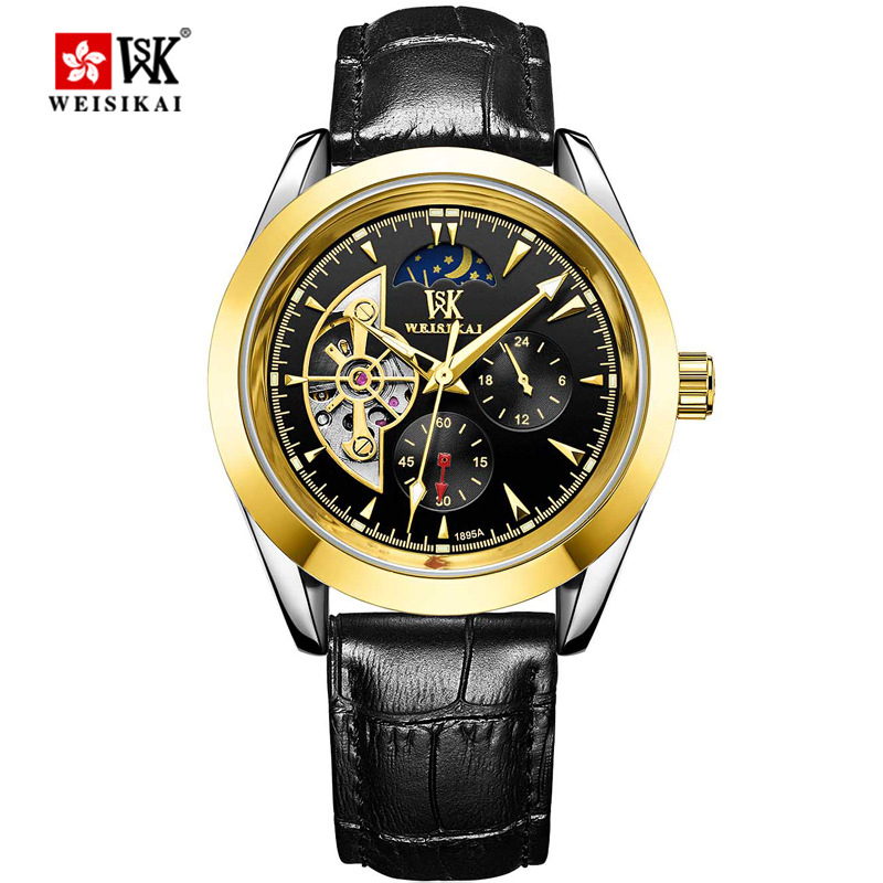 Швейцария подлинных товаров [Weikai] Мужской Бизнес механические часы водонепроницаемый звезда турбийон автоматические механические