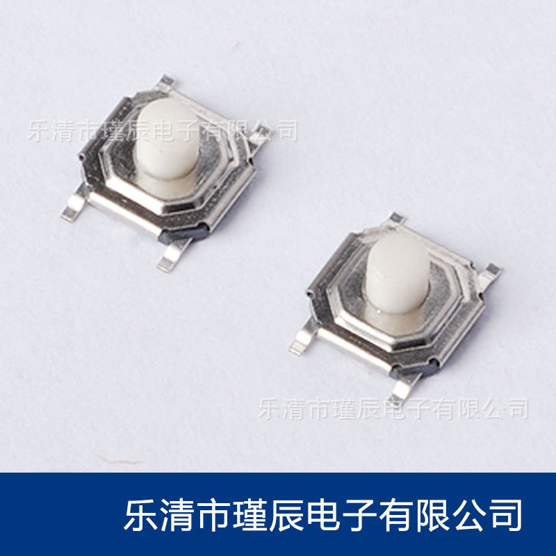 轻触开关贴片4*4主要高度规格4x4x0.8、4x4x1、4x4x1.5mm、4x4x1.6mm、4x4x1.7mm、4x4x2.0mm、4x4x2.5mm、4x4x3.0mm、4x4x4.3mm等,需要其他高度请咨询卖家。开关按钮材质有塑料和铜两种,可根据客户要求生产。开关内部贴有防尘膜,具有较好的密封性能。