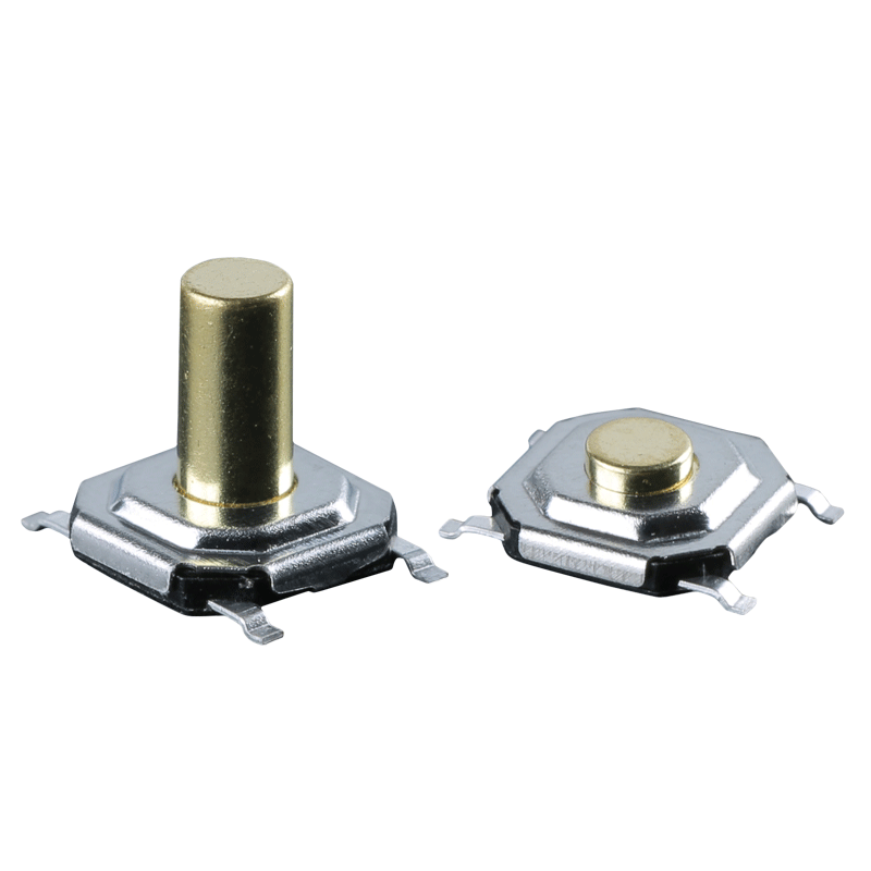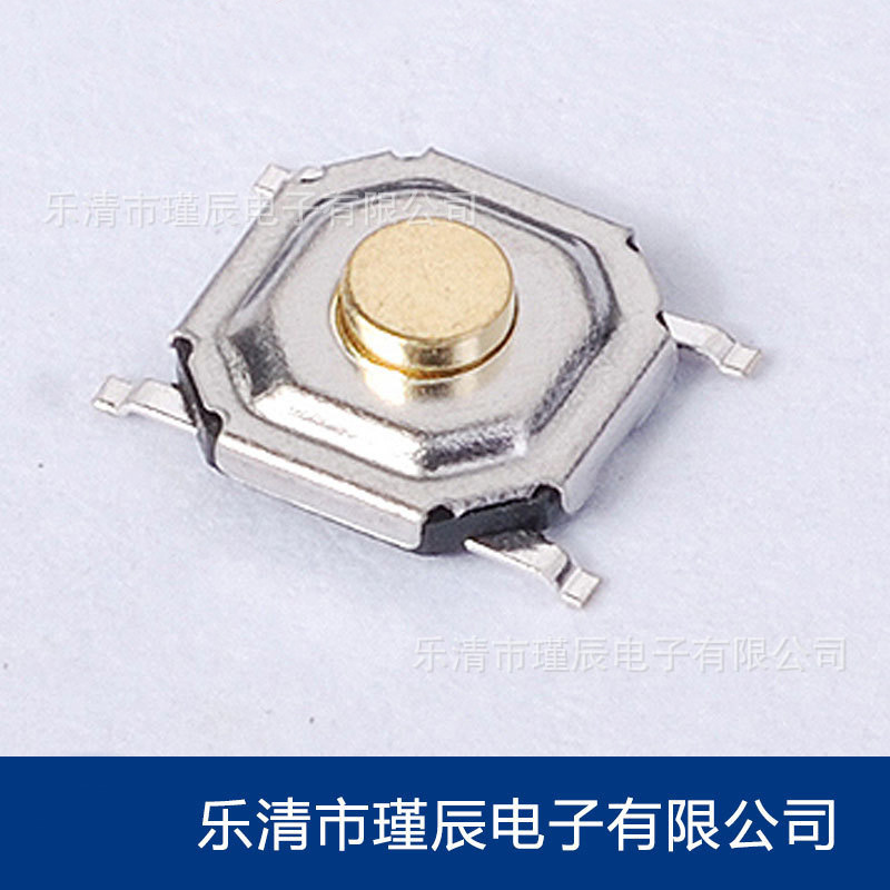 轻触贴片开关4*4弹片目前市场上使用最为广泛的是不锈钢弹片,力度主要有120±30gf和180±30gf以及260±30gf,其他力度也可以定制;开关塑料采用环保耐高温尼龙,端子材质是铜镀银,触点为银触点。
