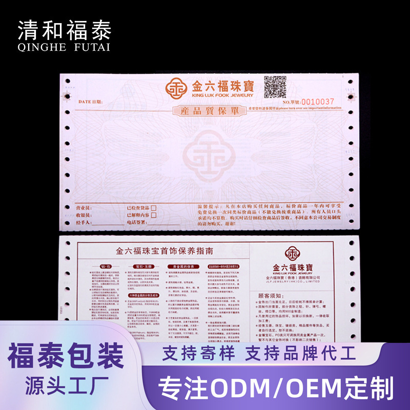 Индивидуальный логотип, двухкомпонентная гарантийная карта для ювелирных изделий, ювелирный документ, гарантийная карта для продажи, коллекционный документ с отверстием, документ против подделок