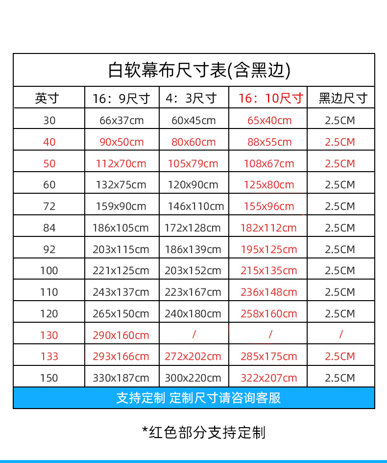 幕布尺寸表供为参考:手工测量尺寸且每生产批次不同,会有1-3CM左右的差距,如介意请慎拍!
