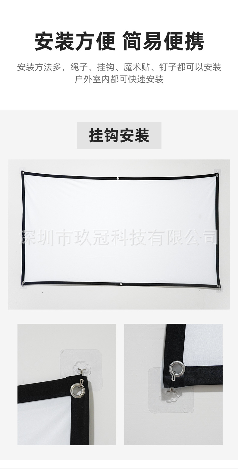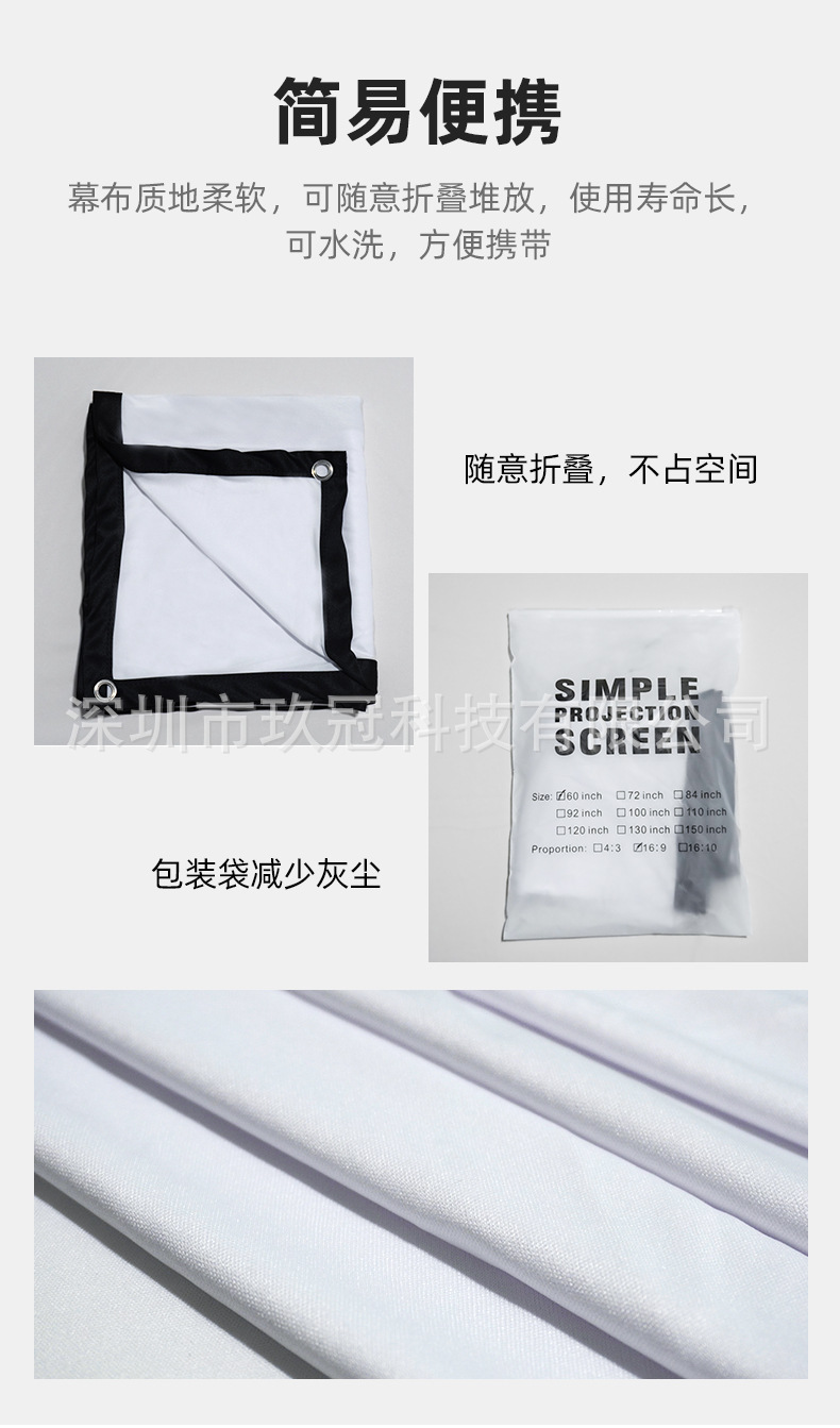 Простой складной проекционный экран из мягкого полиэстера для домашнего использования, 100-120 дюймов, для кемпинга на открытом воздухе, высококачественный экран для проектора.