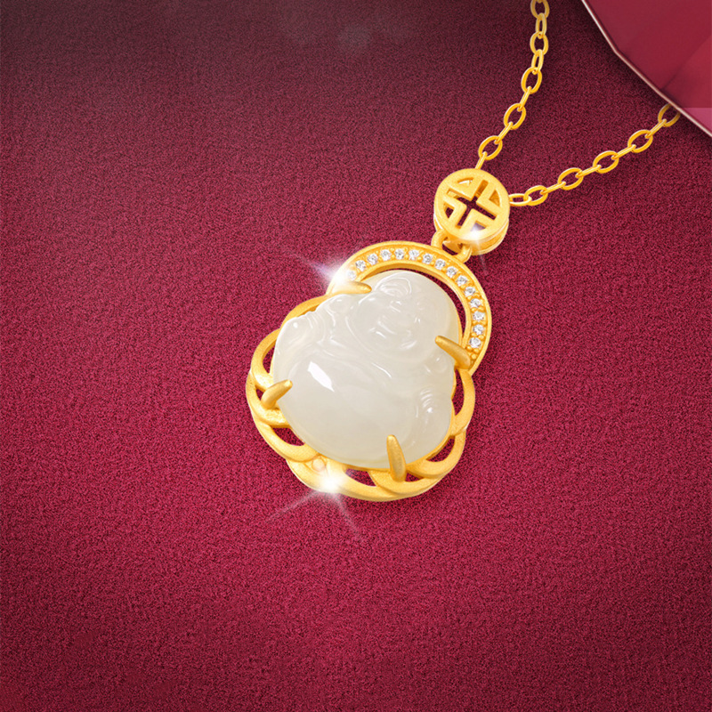 Золотой инкрустированный нефрит и нефрит Hetian кулон древний метод S925 Серебряный позолоченный инкрустация ремесло взрывы белый нефрит кулон поддержка поколения волос