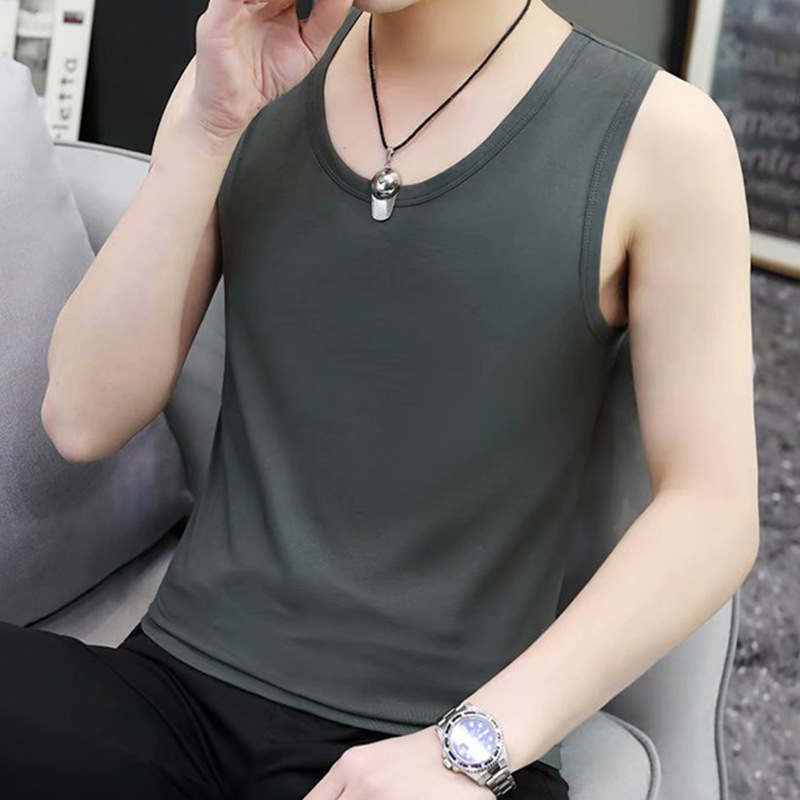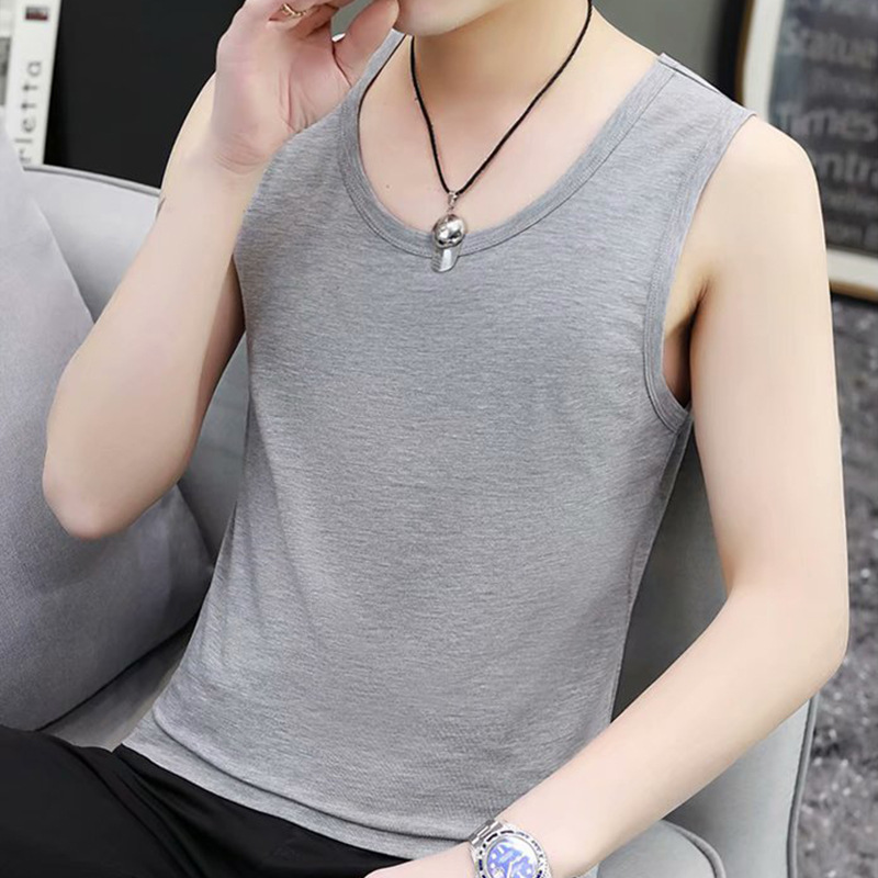 Мужской жилет, новинка лета 2022, простой стиль, однотонный, с короткими рукавами, облегающий, без рукавов, тонкий, повседневный, в корейском стиле, футболка