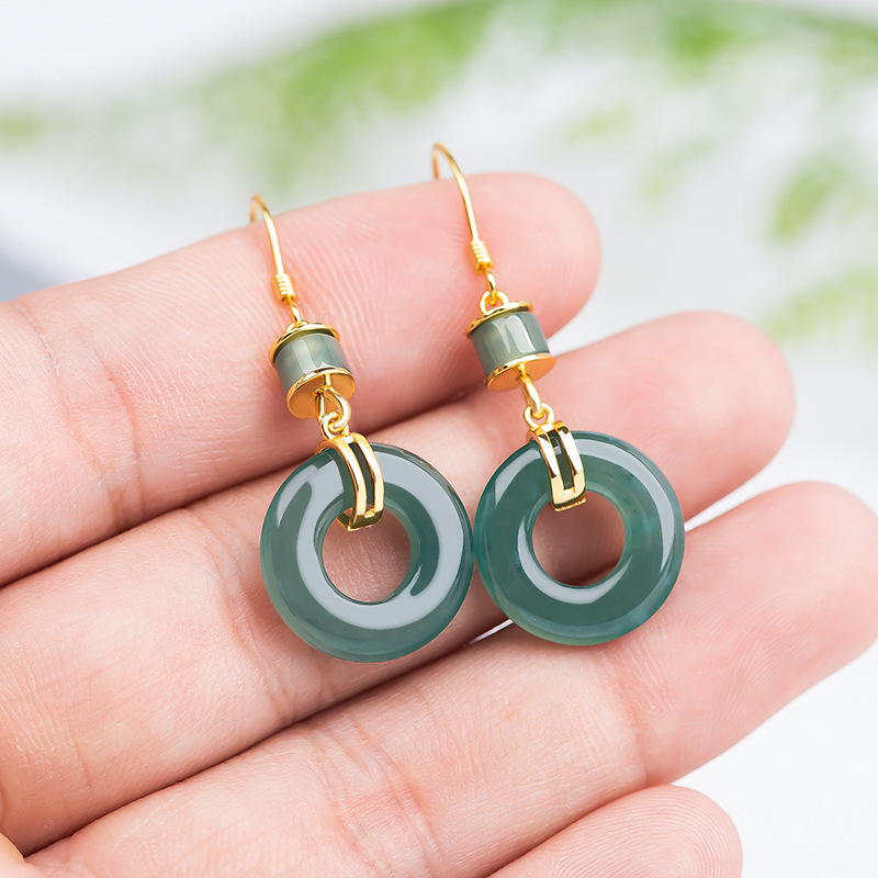 Серьги из серебра S925 с инкрустацией натурального жадеита класса А, синие водные нефритовые серьги, модные женские серьги из ледяного нефрита ins