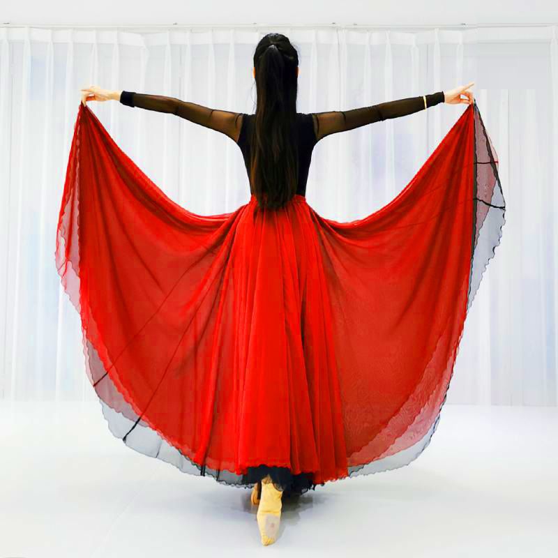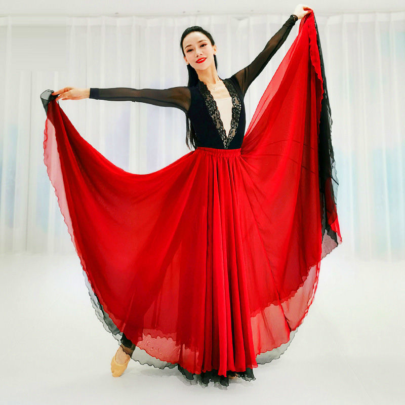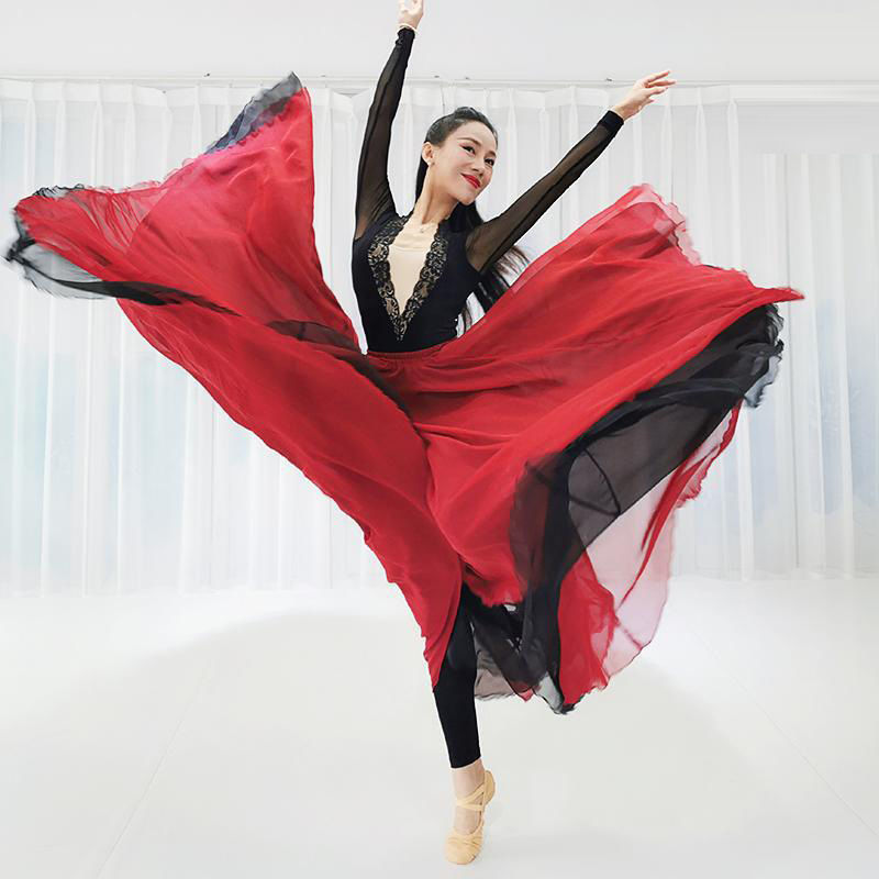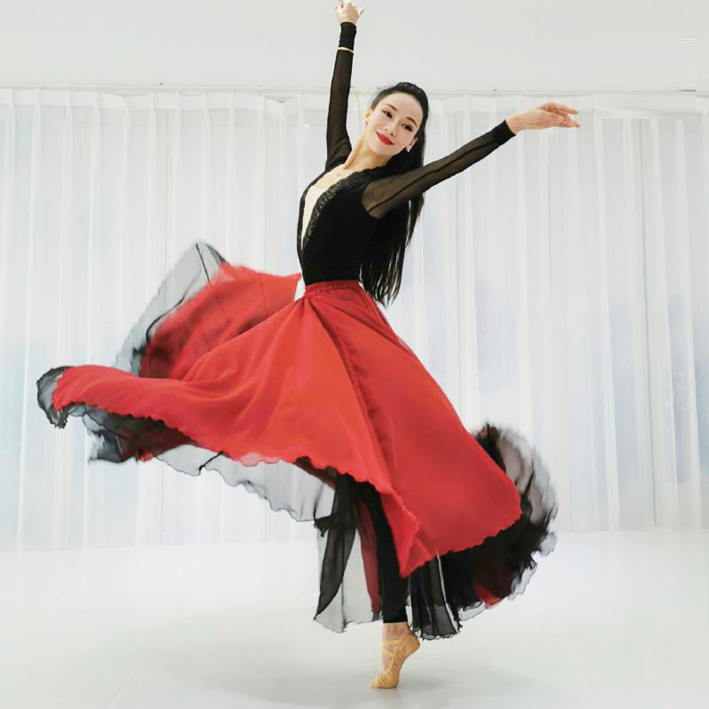 Одежда для танцевальных практик в китайском классическом этническом стиле с 720 градусами, длинная юбка для выступлений, двухслойная элегантная большая юбка-качели