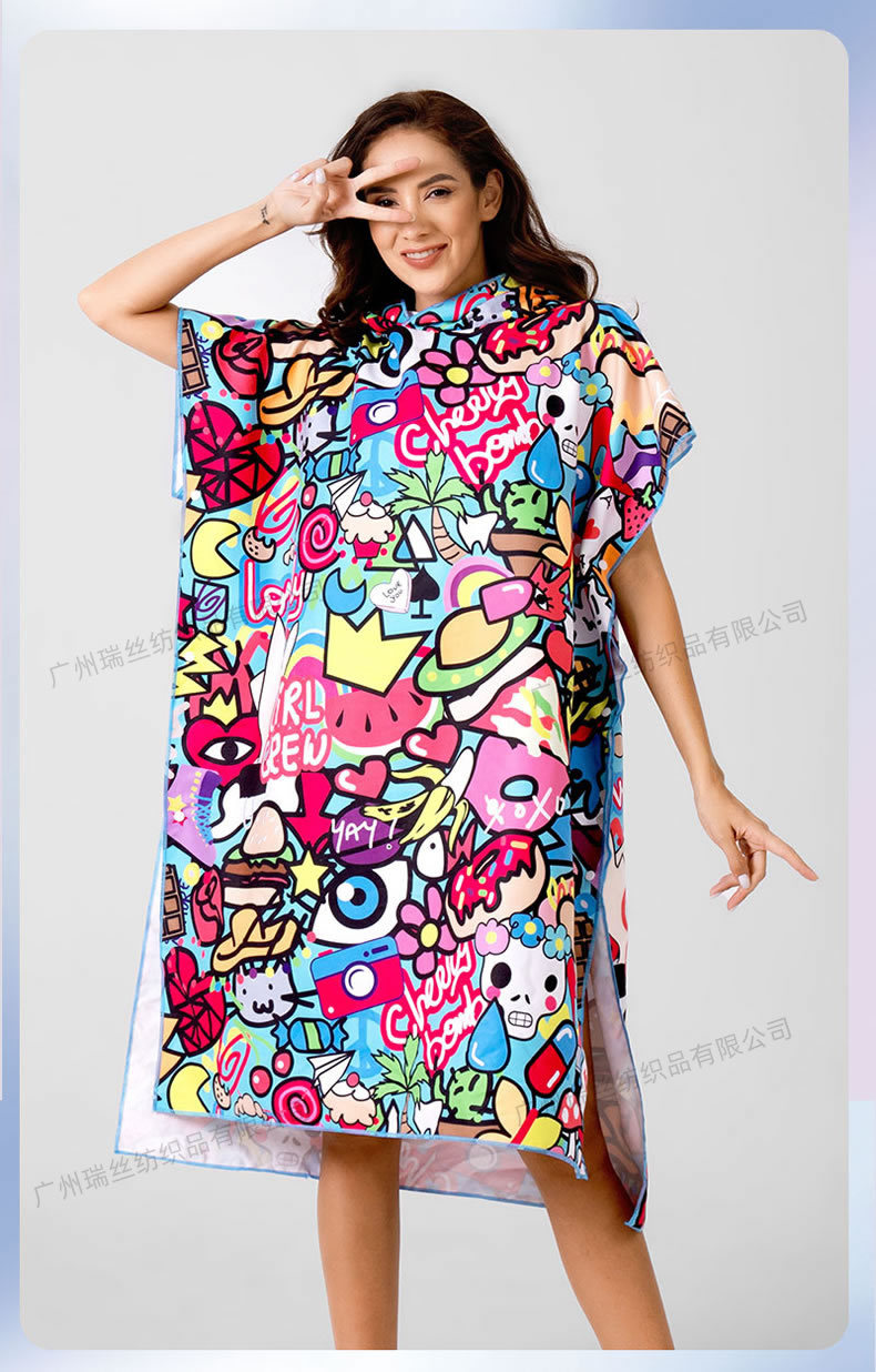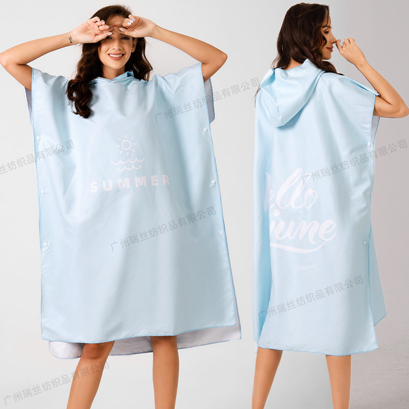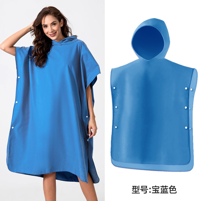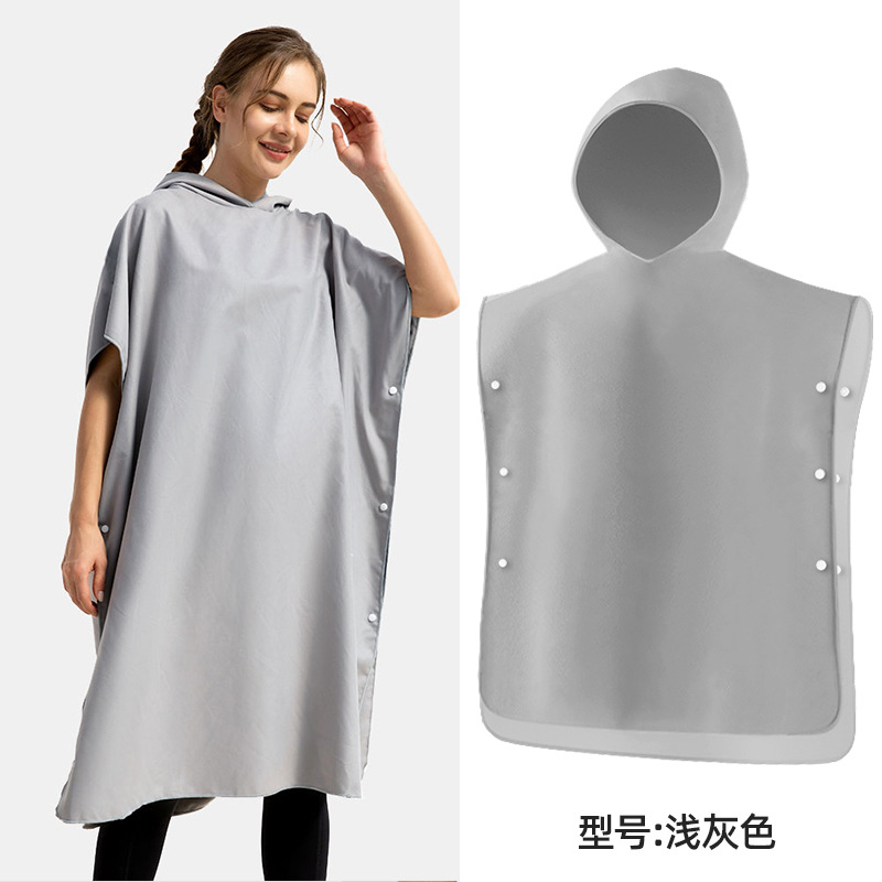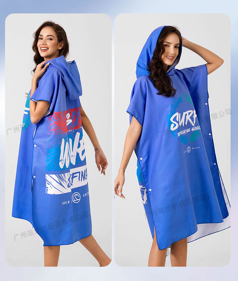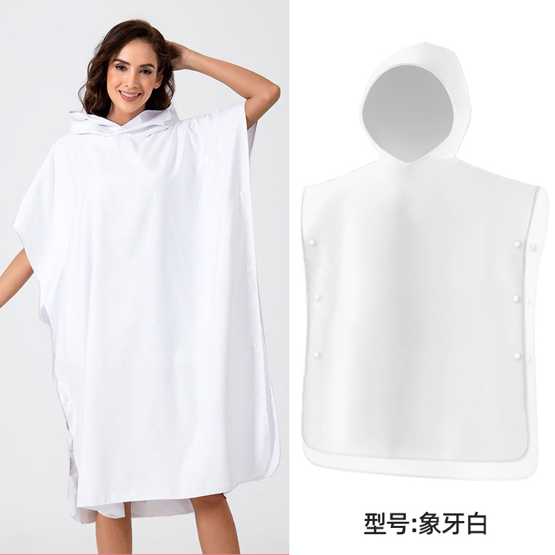 速干沙滩换衣浴袍:6个活动搭扣,穿脱容易,轻薄、速干、便携,游泳或海边换湿衣用得上!防走光保护隐私,版型宽松方便随时更换湿衣,省去更衣间排队的麻烦,也可用作沙滩泳衣罩衫,海滩观光散步省尴尬,防风保暖;另外可用作居家的冲凉浴袍,泳池游泳罩衫,泡温泉等都可用的上,超实用哦!