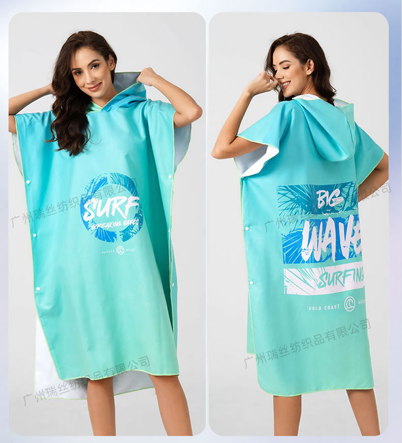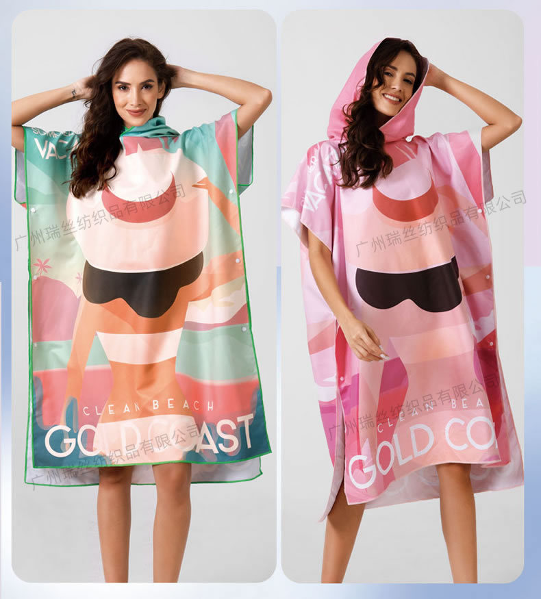 1.本厂所售沙滩浴袍采用超细纤维“双面绒”面料,