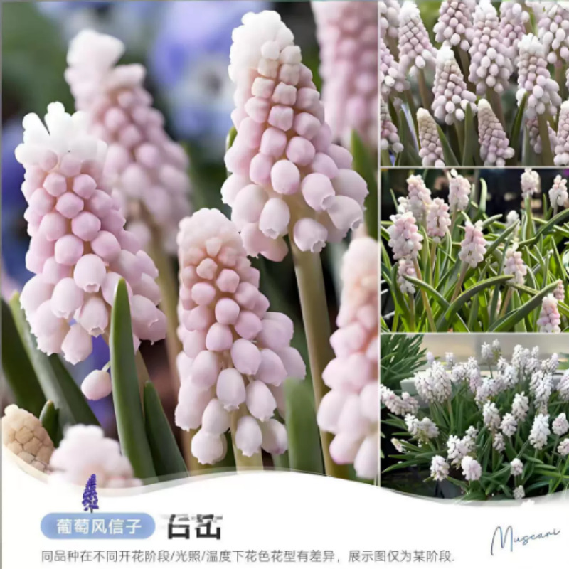 Корень гиацинта виноградного можно выращивать в почве или в гидропонике, семена цветов для посадки осенью и зимой, цветение в том же году, морозостойкий гиацинт виноградный.
