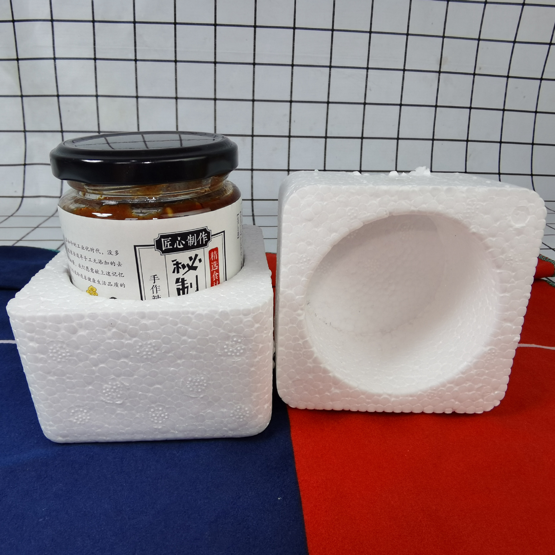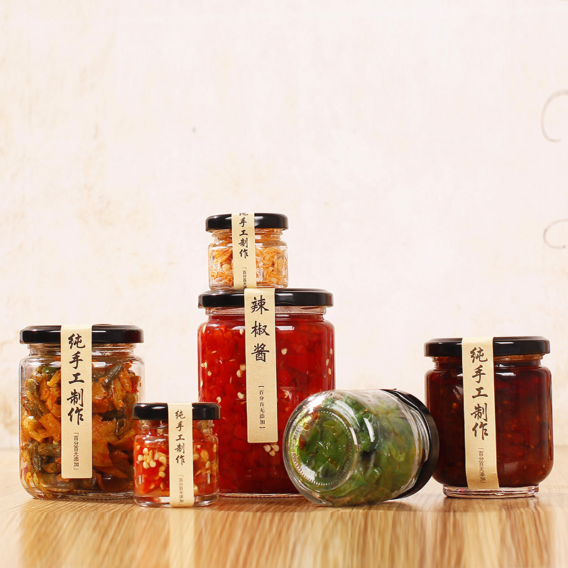 Круглая стеклянная бутылка маринада 195ml240ml Говядина соус чили Консервированная упаковка Прозрачная уплотнительная коробка с крышкой пены