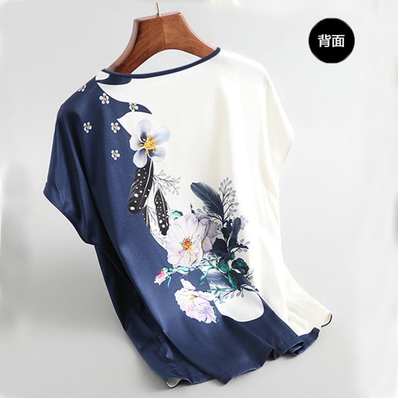 Футболка из ледяного шелка для женщин среднего и старшего возраста, новинка 2025 года, стильный топ больших размеров с принтом, свободная утягивающая базовая рубашка.