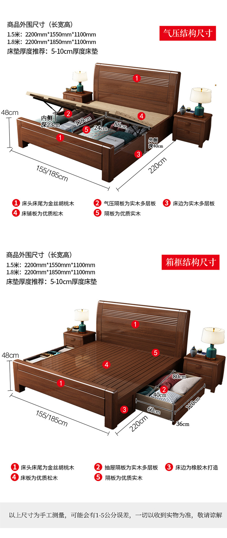 Новая двуспальная кровать в китайском стиле из цельного дерева 1,8 м двуспальная кровать 1,5 м экономичная простая современная мебель для хранения в главной спальне