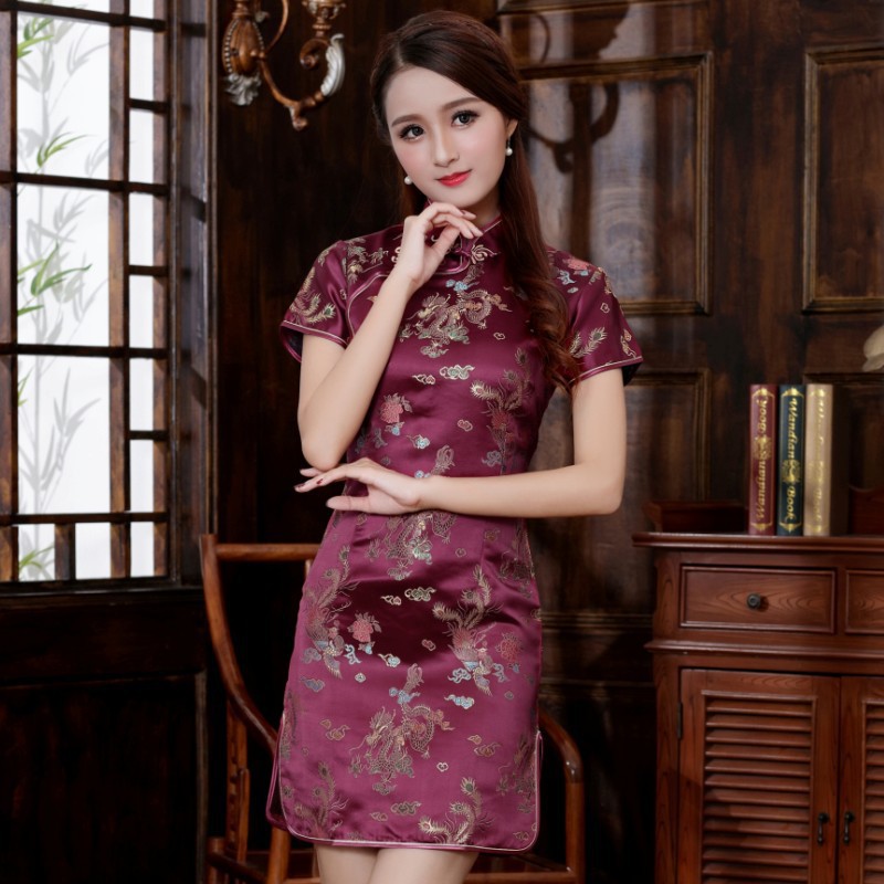 Женский новый улучшенный китайский стиль Dragon and Phoenix на каждый день в стиле ретро, подиум больших размеров, с короткими рукавами, короткий Cheongsam S-6XL