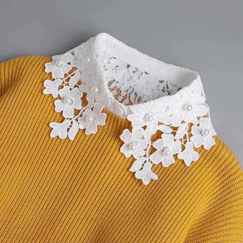Белый вышитый бисером воротник рубашки маленький взрослый Универсальный Высокий воротник полосатый внутренний костюм Поддельный Воротник
